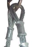 Estrobos de acero, confeccionados en cables con alma de acero y fibra, prensados hidráulicamente con casquillos de acero cónicos de alta resistencia, trenzados con sistema de seguridad, certificados con norma ASME B30.9, factor 5:1.