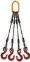 Incluye placa de identificación indicando cargas seguras de trabajo, ángulos, largos, diámetro del cable y factor de seguridad.