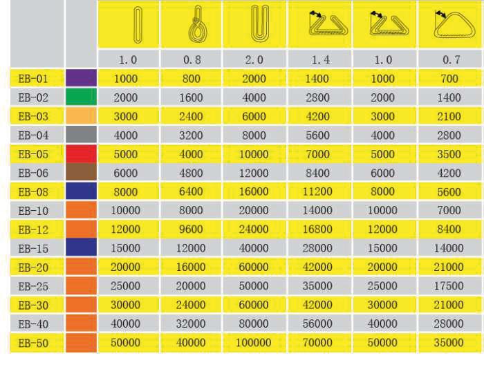 ▪ El color de la cinta y la cantidad de líneas que incluye ayudan a determinar la capacidad de carga de la eslinga.