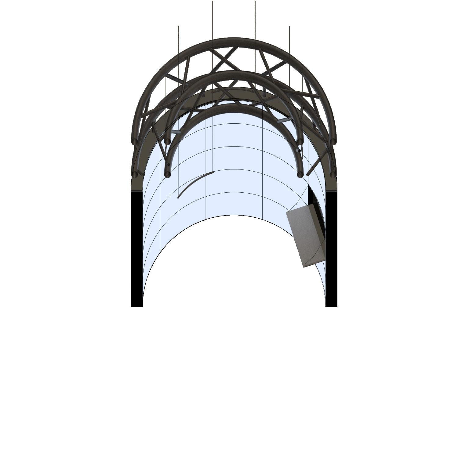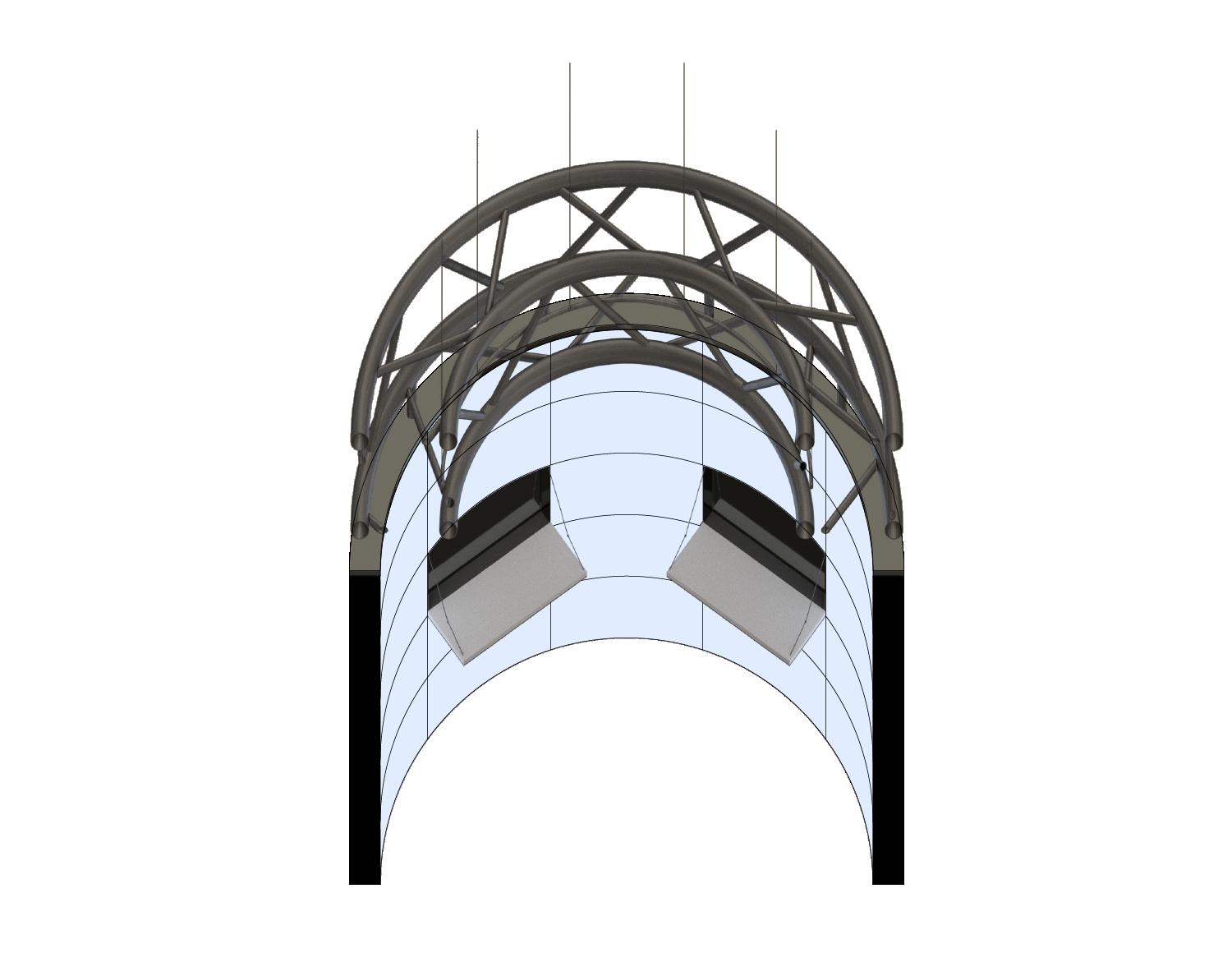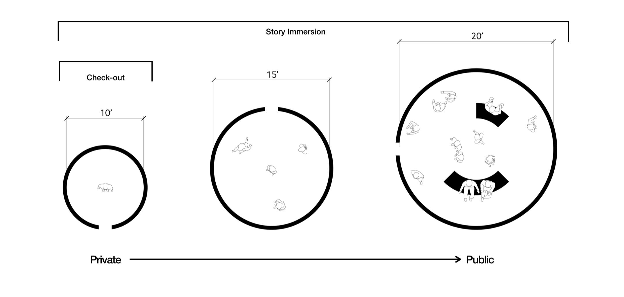The LED pods are employed at three different scales. These modules allow for the three primary touch points of the consumer journey to be met. After the consumer is (1) scanned, they can then experience (2) story immersion in any of the module scales. The consumer can opt to (3) check-out at any point in their journey by navigating to the smallest individual sized pod. Here, the consumer will be able to see their token avatar in a 1:1 mirror fashion with product overlayed on it.