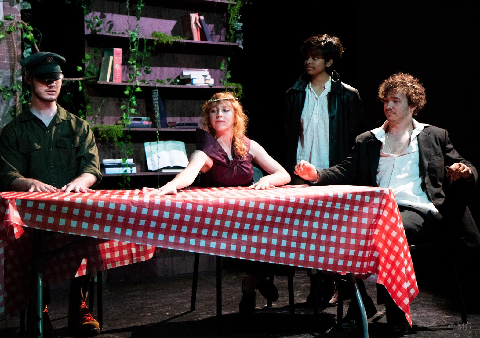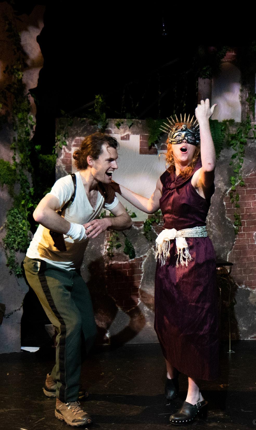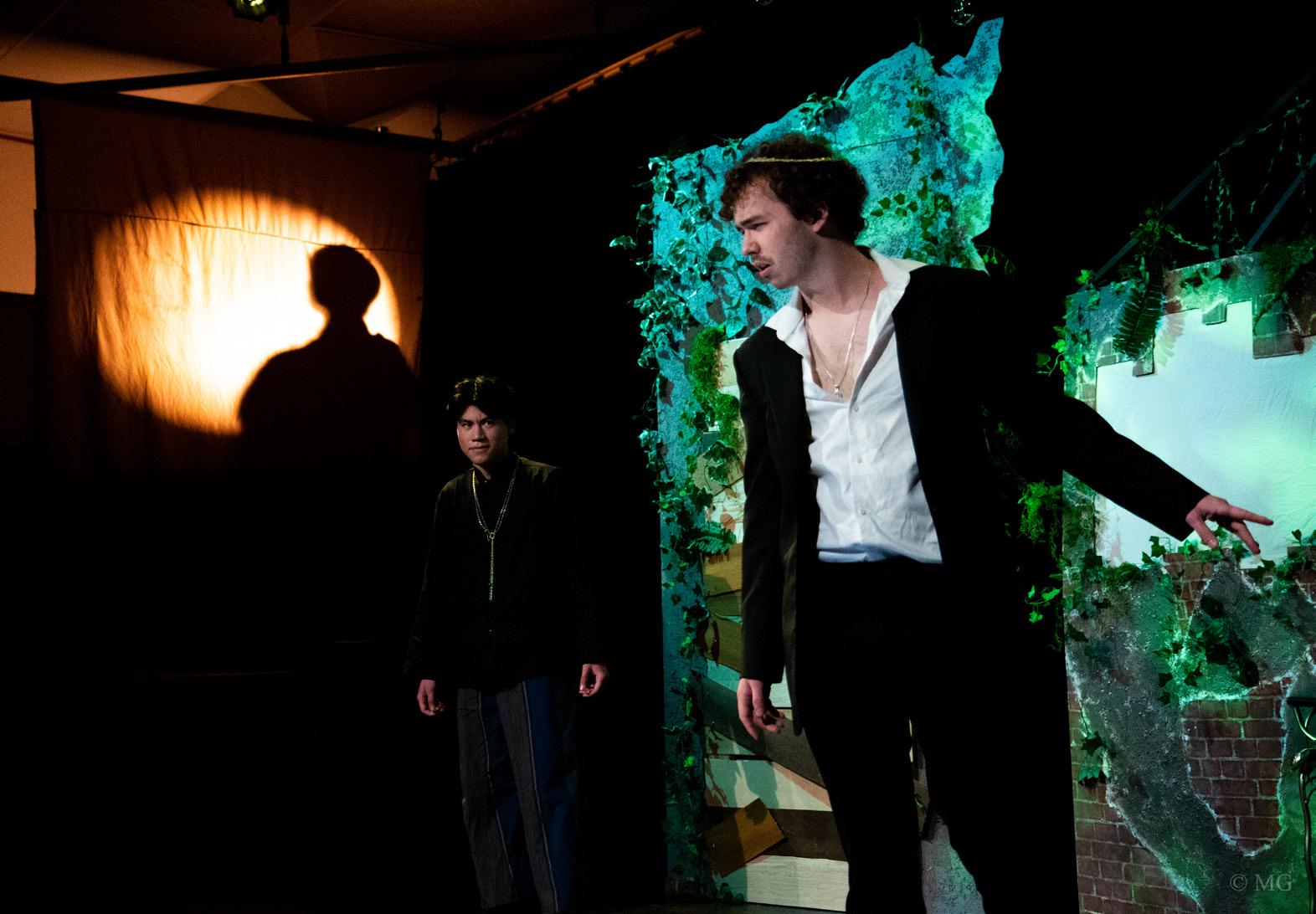 A veteran and his sons return from years of service to their country to find themselves thrust into a vicious cycle of death, rape, vengeance, and torture that seems only to end when the play does. Shakespeare’s bloodiest work, Titus Andronicus is classified as a tragedy yet is riddled with dark humor. The set sits in a stylistic limbo between fun and frightening and conveys postapocalyptic scenery with accents reminiscent of post-WWII. A bohemian civilization built upon rubble, the design also plays with ideas of the familiar and the unfamiliar, leaning into aesthetics with which we are familiar, however amplified or even commingled with aesthetics that would have never been mixed before. The integration of surfaces for shadow puppetry was essential to the set as well, providing space for insidious narration to be delivered in an ironically playful manner.