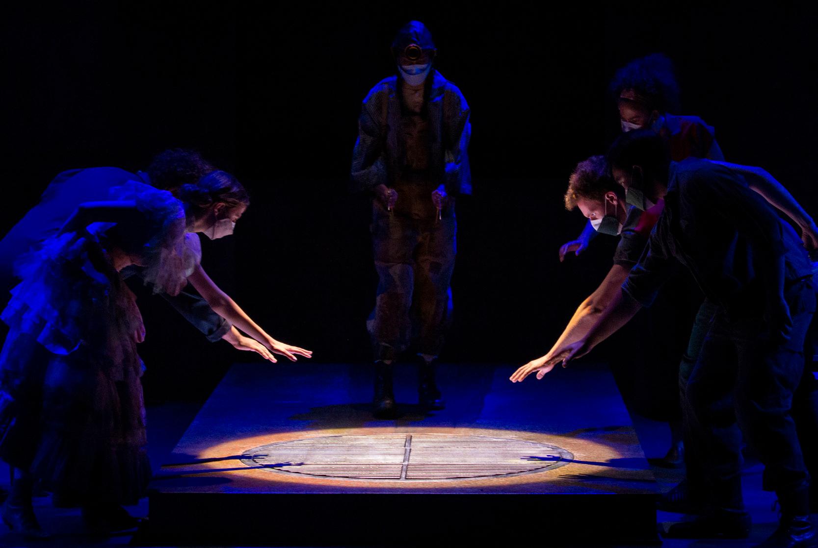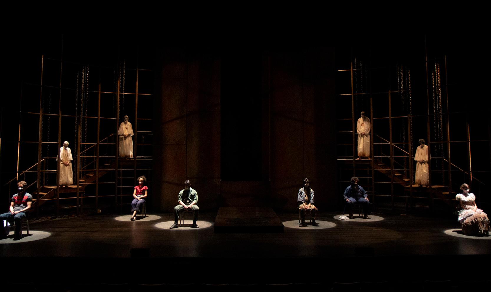 In an unfamiliar world, six unexpected companions find themselves on a common journey, facing unforeseen tests to achieve an unknown goal. Inspired by Hermann Hesse’s Journey to the East, Philip Kan Gotanda’s surreal new drama plumbs the depths of the human quest for meaning in a fresh, urgent parable on wholeness, identity, and belonging. Inspiration for the set design began with the vast storm drain systems of the world, especially in Japan, France, and Spain. The above imagery spawned the predominant idea of creating a liminal space extending to the sky; a paradoxical space that could be both ancient and modern.