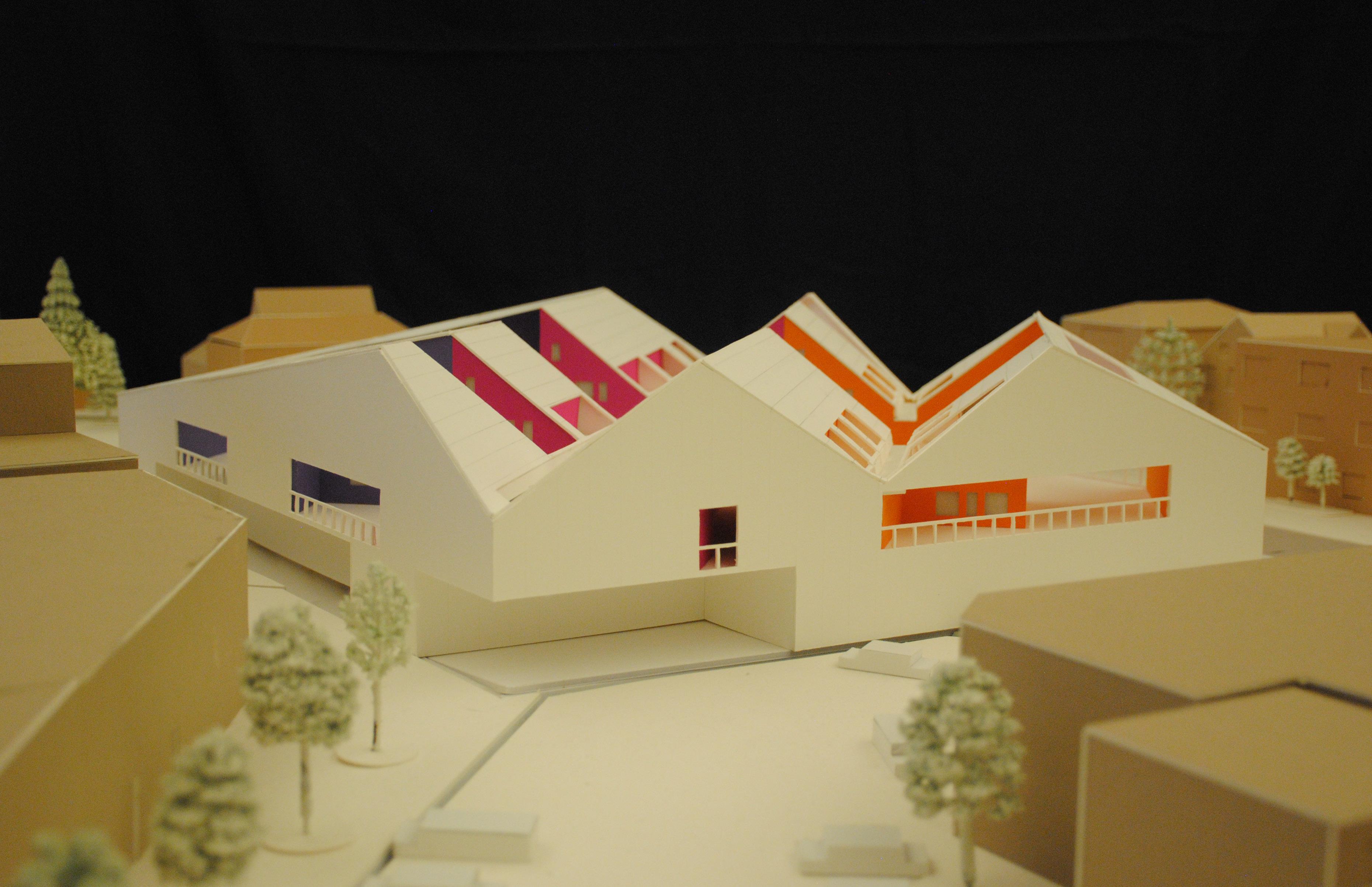 SUBTRACT SUNKEN COURTYARDS ROTATION TO ORIENT WITH SITE GABLE PROGRAM EXTRUSION ORGANIZATION COURTYARDS FAMILY FINAL PLAN + SECTION CUT MIRROR ACROSS GRID LINES RIDGEVALLEYRIDGE YOUTH SINGLES MIRROR ACROSS GRID LINES VALLEY PLACE UNITS & MICROCOURTYARDS ALONG GRID CROP 24