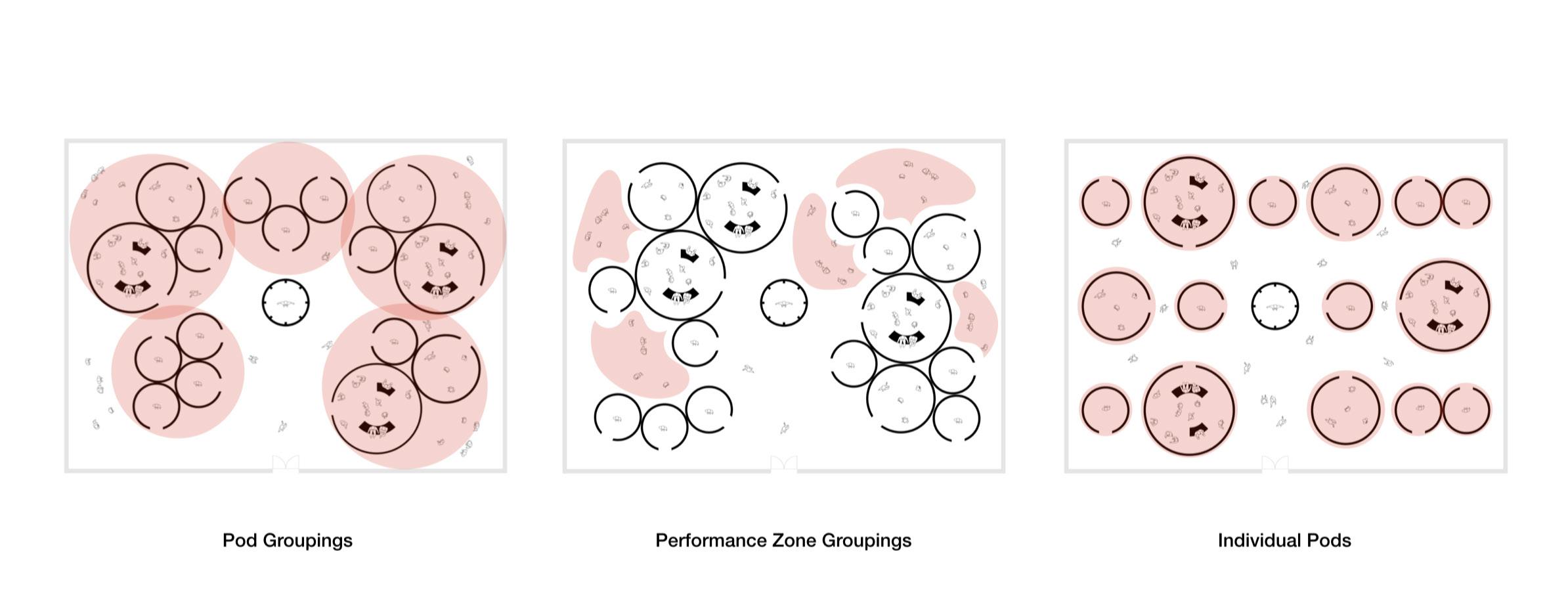 The designed set of modules can be rearranged into an array of different layouts in order to meet the needs of the desired consumer journey.
