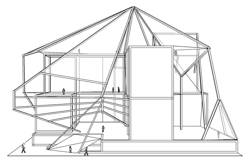 Su segunda forma se basa en el hecho de seguir con la idea de la habitabilidad sin perder los ejes conceptuales con los que inicia la forma del proyecto, en esta fase de su evolucion se pueden observar caracteristicas de espacio mas formales como: Aproximacion, acceso, permanencias y recorridos verticales y horizontales