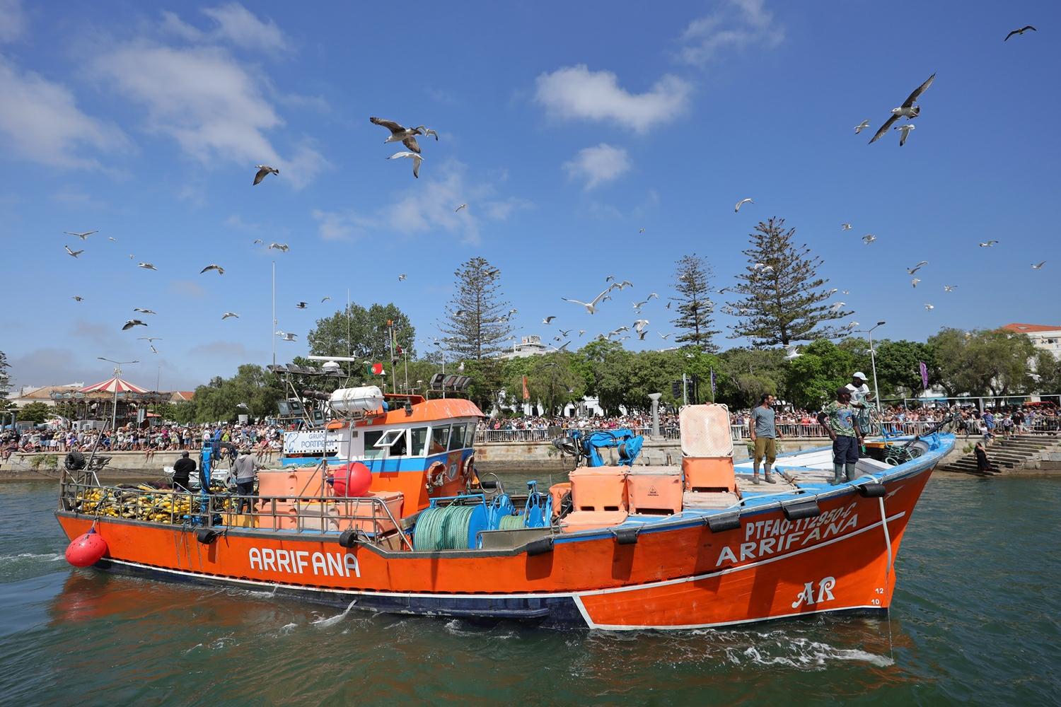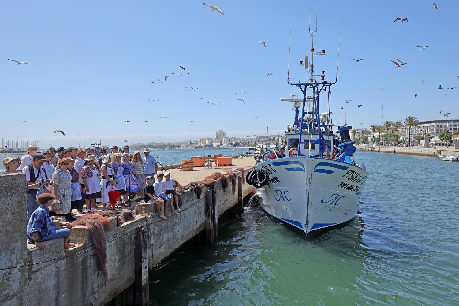 delas. A lota do cerco surge na Zona Ribeirinha de Portimão no início do século XX, primeiro com os galeões e, mais tarde, com as traineiras. Aí funcionou até 1987, altura em que passa para a outra margem do Rio Arade. Por isso, a recriação da descarga do peixe é uma celebração dessa memória, não correspondendo a uma década específica, mas a um período em que se conjugam as principais histórias relatadas por quem trabalhou e conheceu bem a lota. Nesta edição, a recriação envolveu, então, duas traineiras que estão na atualidade em atividade – a «Arrifana» e o «Portugal Jovem», assim como o «Travesso» e a enviada «Moira».