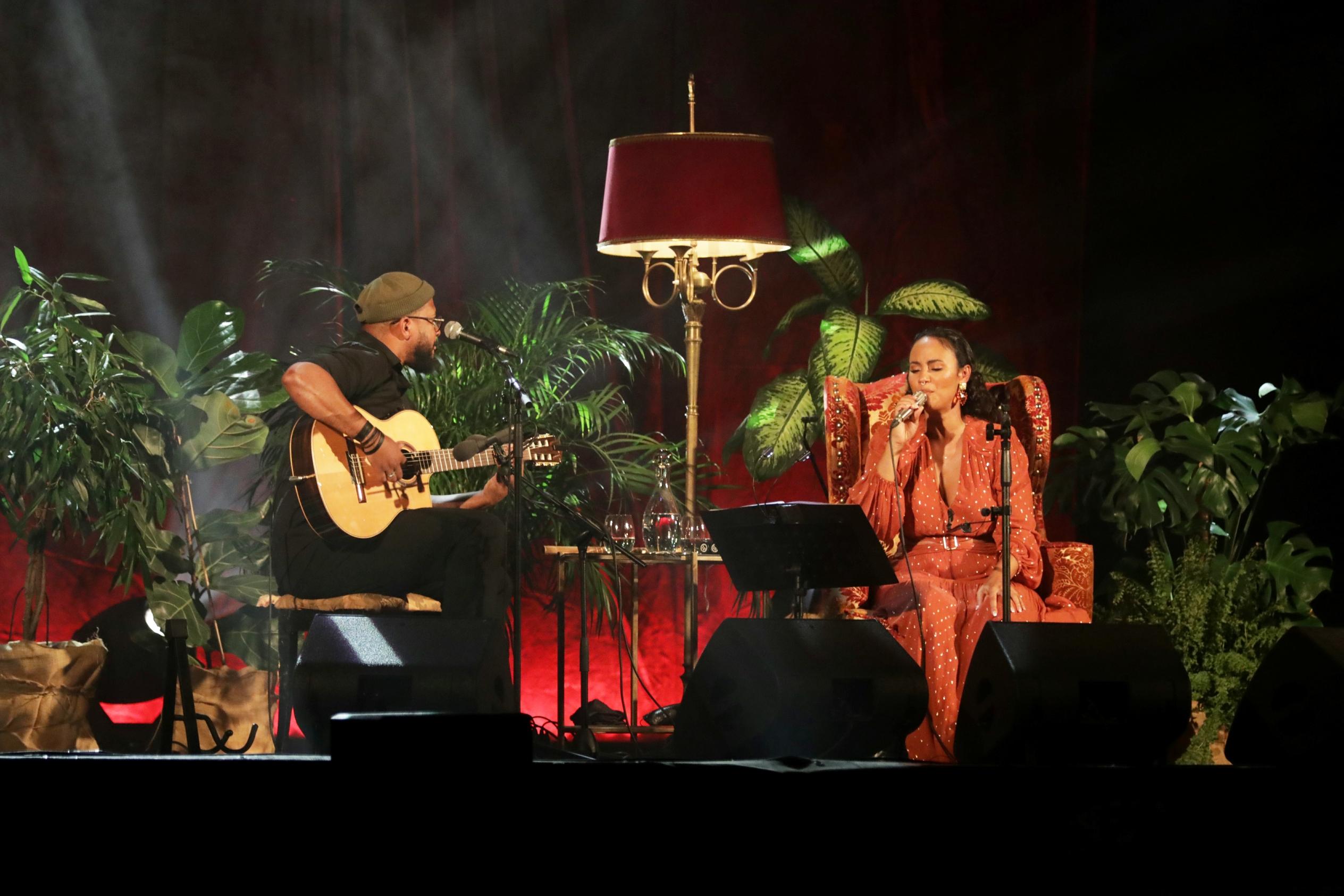 imprevisibilidade calorosa que reflete a sua vida aventureira, cantada em crioulo cabo-verdiano, inglês, francês e português, Mayra Andrade sentiu o momento de voltar à essência do seu processo criativo. Em «reEncanto», acompanhada apenas pelo guitarrista Djodje Almeida, a artista revisita, a uma luz mais despojada e intimista, canções de álbuns anteriores como Navega, Storia, Storia, Lovely Difficult e Manga. Iluminada ela mesma pela experiência de ter sido mãe, Mayra reencantou o público tavirense com a magia das coisas simples.
