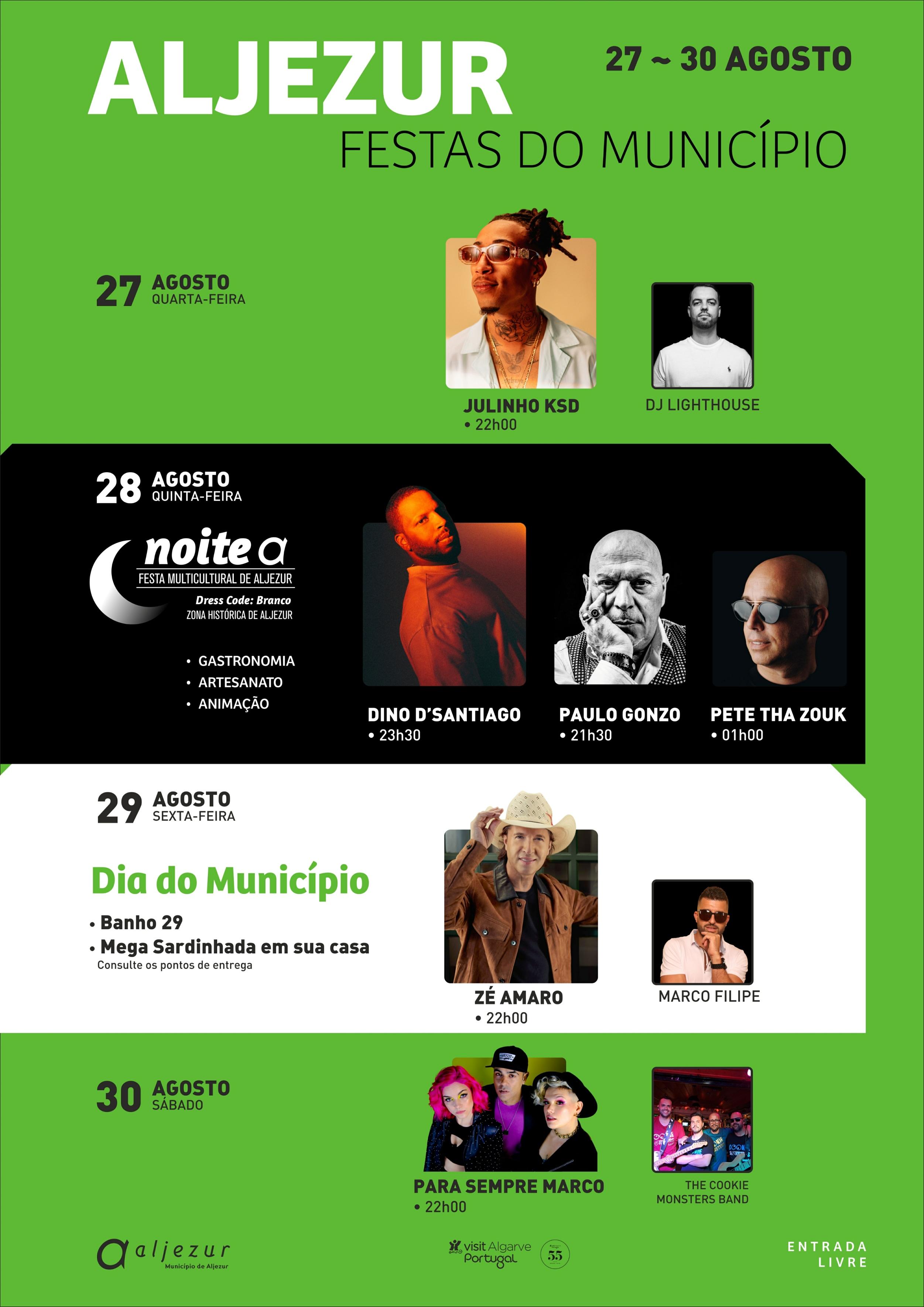 Recreativo Alturense, que demonstrou novamente o seu enorme talento em várias faixas etárias, após celebrar 25 anos em 2024. O cabeça de cartaz deste dia foi o cantor algarvio Dino d’Santiago, que proporcionou um espetáculo único, repleto de música portuguesa e origens africanas, seguido do DJ e voz da Rádio Comercial, Wilson Honrado. As festividades terminaram com o concerto de verão da Sociedade Recreativa Popular – Banda Musical Castromarinense, no dia 17 de agosto, no Revelim de Santo António.