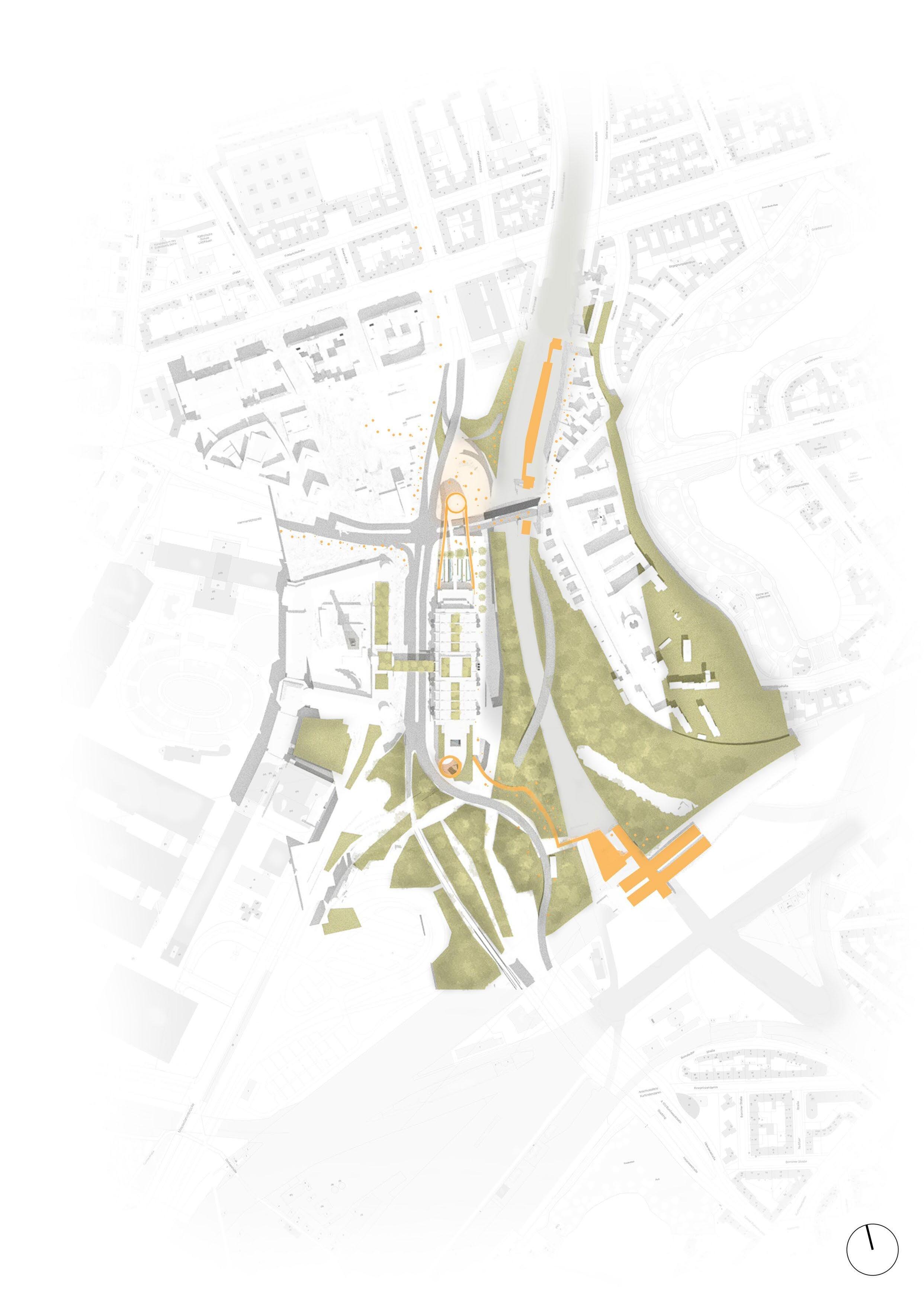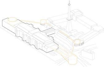 The accessibility is to be improved by connecting the two S-Bahn stations to the ICC. The pedestrian bridges will be activated with public infrastructure and cycle lanes. Art installations made from recycled materials are scattered around site acting as a magnet.