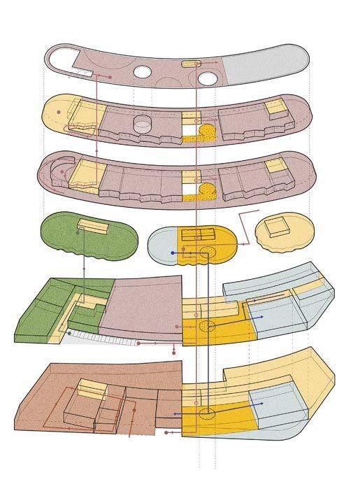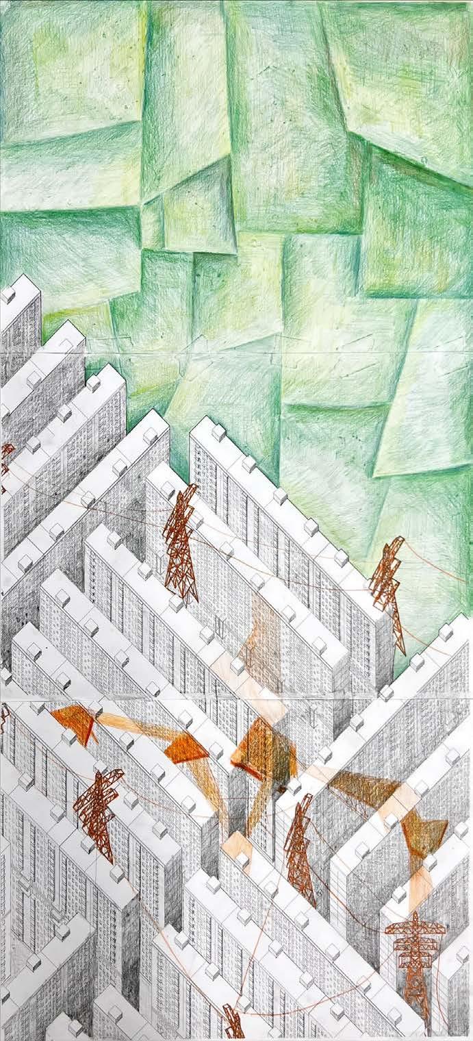 Based on initial observations of East Tilbury, it is a lifeless town that lost the essence of nature, being surrounded by the artificial agricultural landscape. It is not an inviting town lacking in human activity and leisure, since it was built for workers of the Bata Shoe Factory as the ‘Modernist utopia’. The intentions are to reintroduce the chaotic nature of the past into the inactive areas of the town. The landscape will be physically lifted in the sky, elevating its importance over manmade concrete structures. Not to mention, in the case of an extreme event, it is assumed that the town will be completely flooded, which is a reason to lift the landscape. The proposal features moments of intimacy in the sky to encourage human interactions to focus on predominantly the environment.