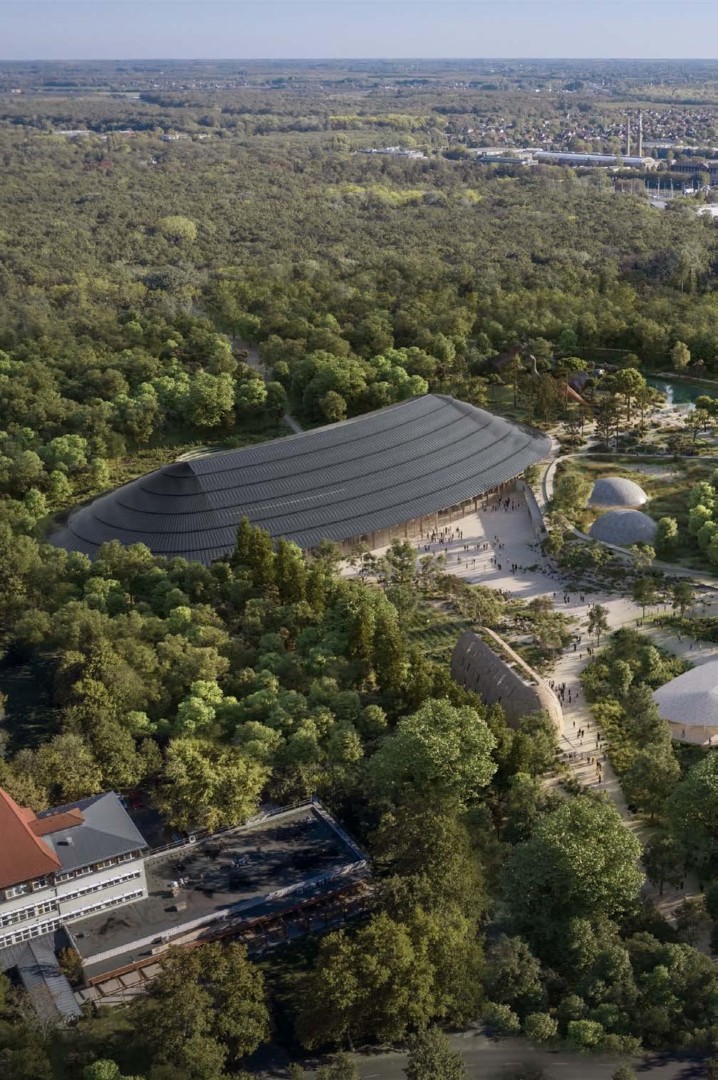 Aerial rendering produced by Artefactory showing the context of the park and mountains