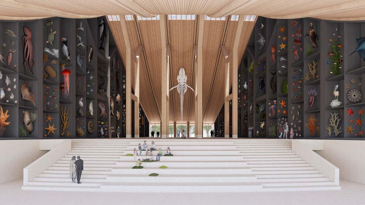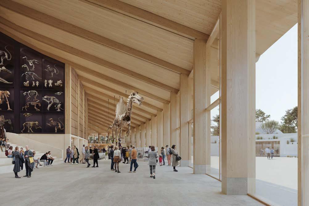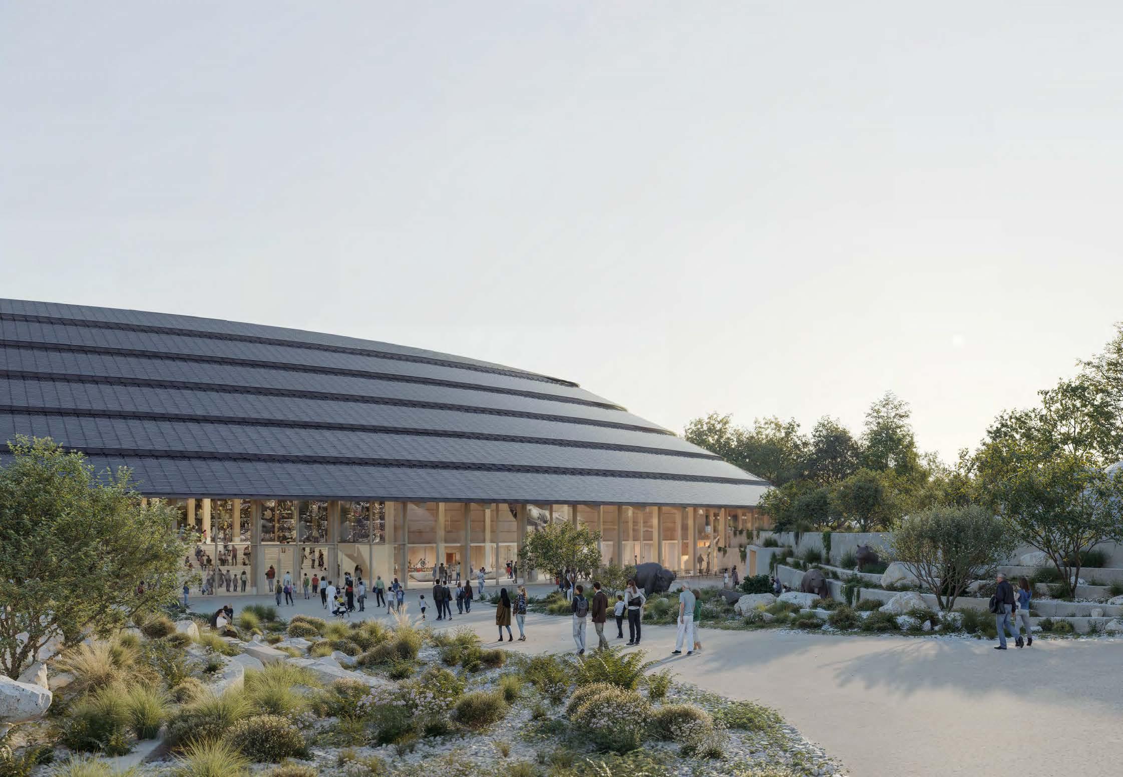 The museum blends modern and traditional elements using timber and adobe for sustainability. Its large roof, equipped with solar panels, supports geothermal heating and passive climate control to minimise energy consumption.