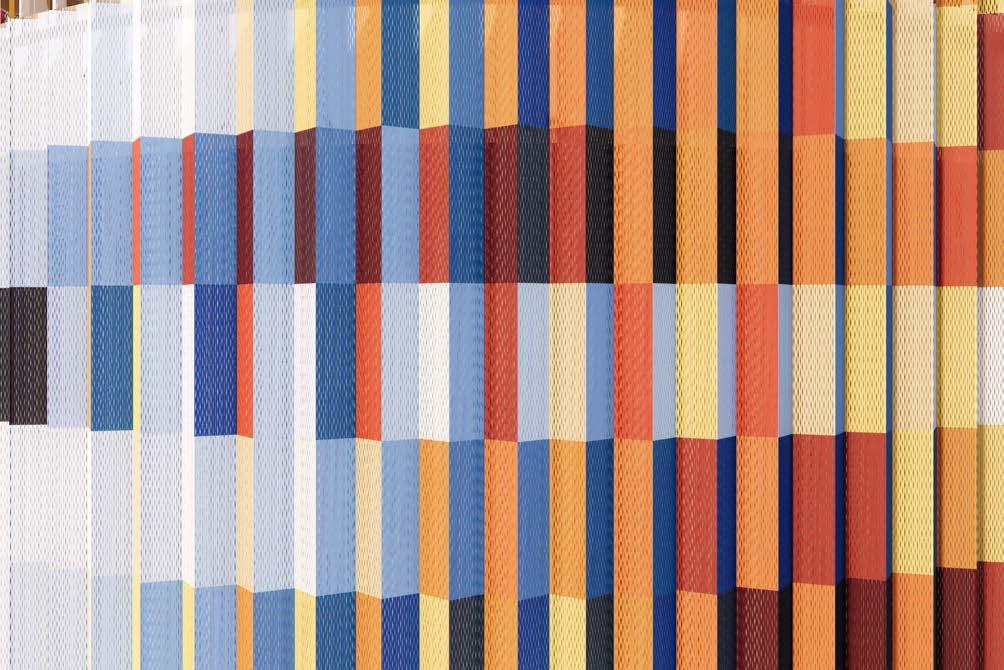 The project, a 50-meter-high building in Konstanz, serves as a new landmark. Its kinetic polychrome facade, featuring expanded metal elements in varying angles and colors, creates a dynamic, shifting appearance as viewers move around it. The timber structure behind the facade, built atop exposed concrete, uses prefabricated elements for precision and efficiency.