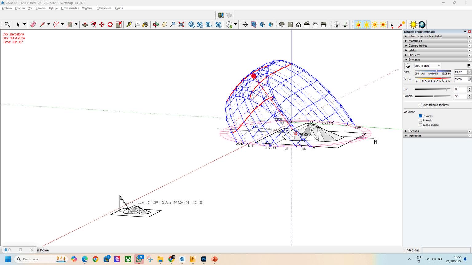 SEGUN EL OCTOGONO, EN LA PARTE NORTE DE LA FACHADA QUE ESTA DE COLOR AZUL NO LLEGA PRACTICAMENTE NADADERAYOSDELSOL