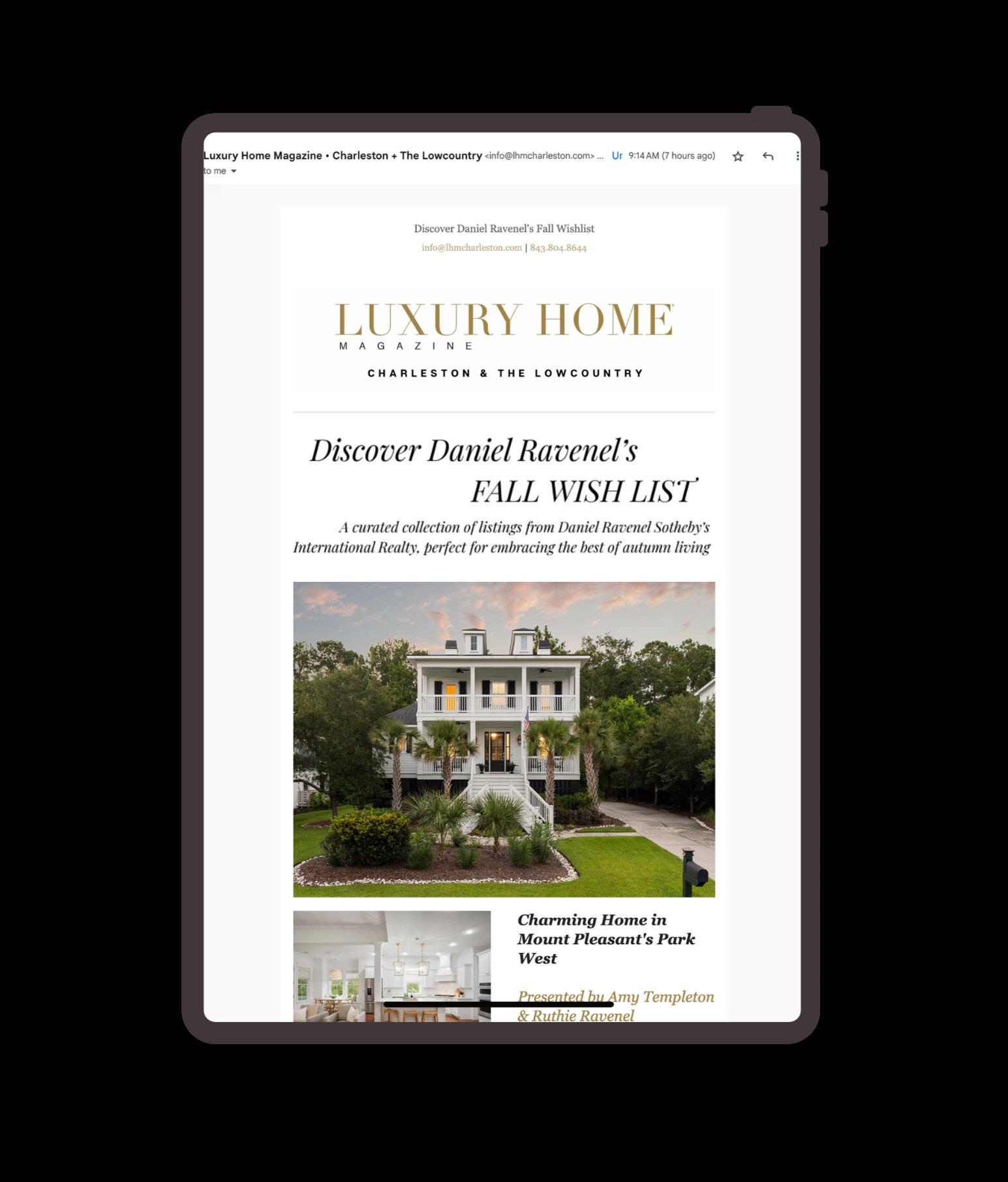 Private e-mail campaign to Daniel Ravenel Sotheby’s International Realty brokers with an internal network of investors and clients throughout the Lowcountry and beyond.