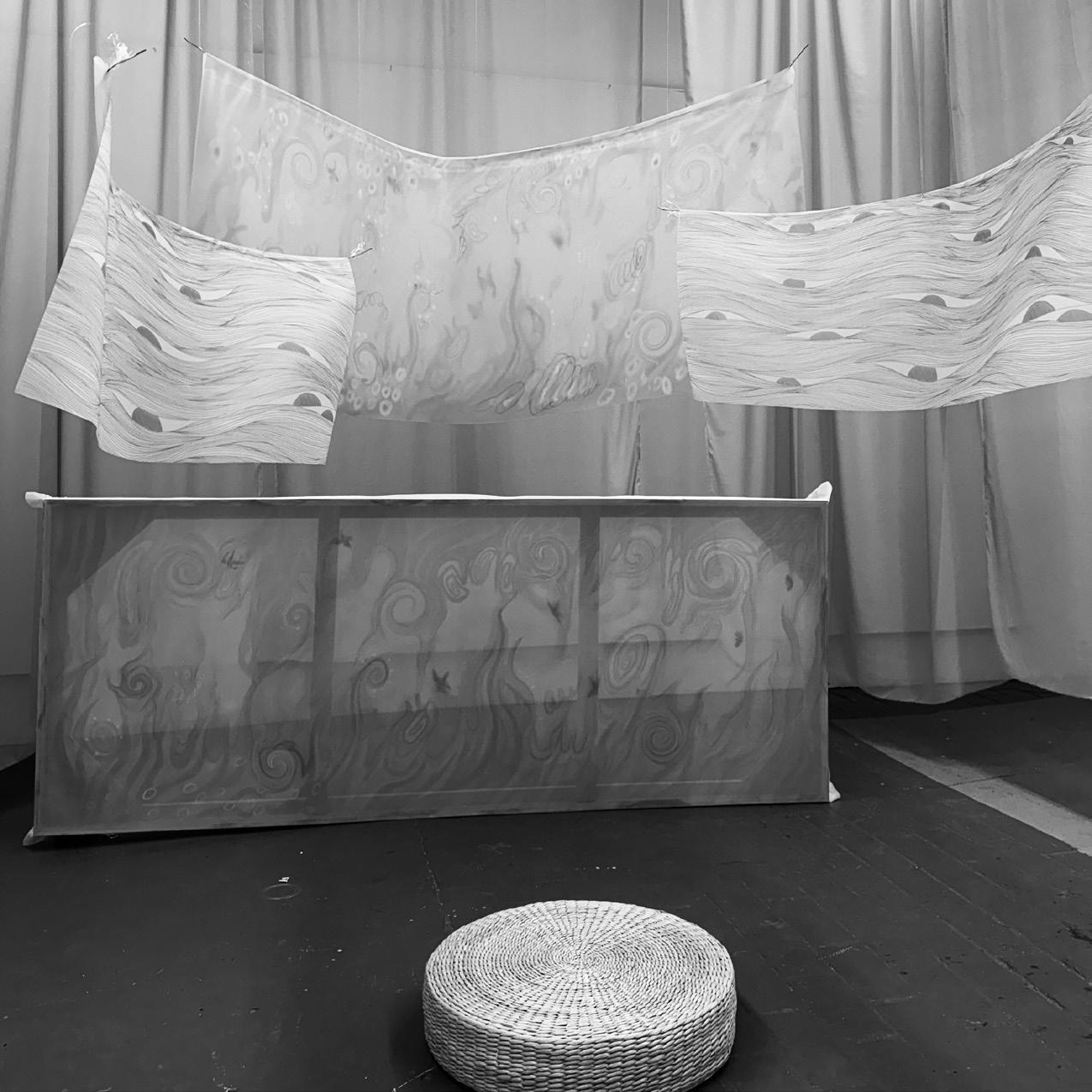 I am aware, therefore I am My thesis was inspired by the philosophical concept presented in Zhuangzi’s story Dream of the Butterfly. This story deeply captivates me as it challenges the boundaries between reality and illusion, prompting me to question: How do we define the self? What is our place in the world? With these questions in mind, I embarked on an artistic exploration, integrating painting and installation to express the infinite cycle of life, transformation, and inner awakening. The work unfolds within a semi-enclosed space, creating a temporary retreat from the outside world and inviting viewers to engage in inner dialogue through interaction with the space. It is a journey between reality and illusion, as well as a return to nature and a broader perspective of oneself. Each viewer is encouraged to interpret the work in their own way, discovering answers unique to their own experience.