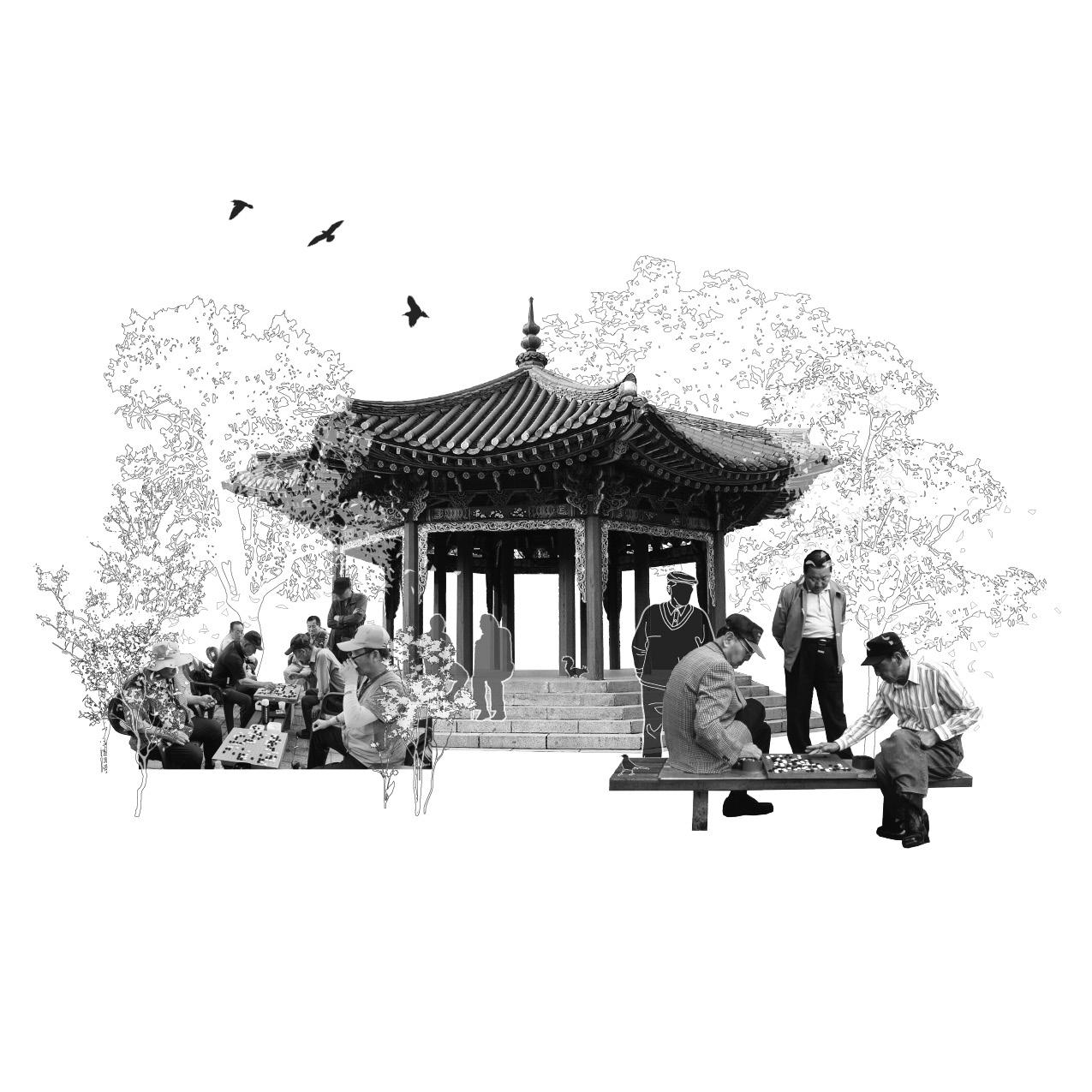 This thesis looks to repurpose the Sewoon Sangga—a mixed-used megastructure—to reconnect and support marginalized low-income seniors. Rapid urbanization and class segregation in Seoul, South Korea, have led to the marginalization of the country’s growing demographic of low-income seniors. Excluded elsewhere, they have created their own safetynet communities in the city’s historic core. These communities have been protected by the presence of the Sewoon Sangga, however, ongoing city beautification efforts now threaten their existence. In response, this project seeks to preserve the structure while introducing a series of acupunctural public space interventions that foster placemaking for the elderly.