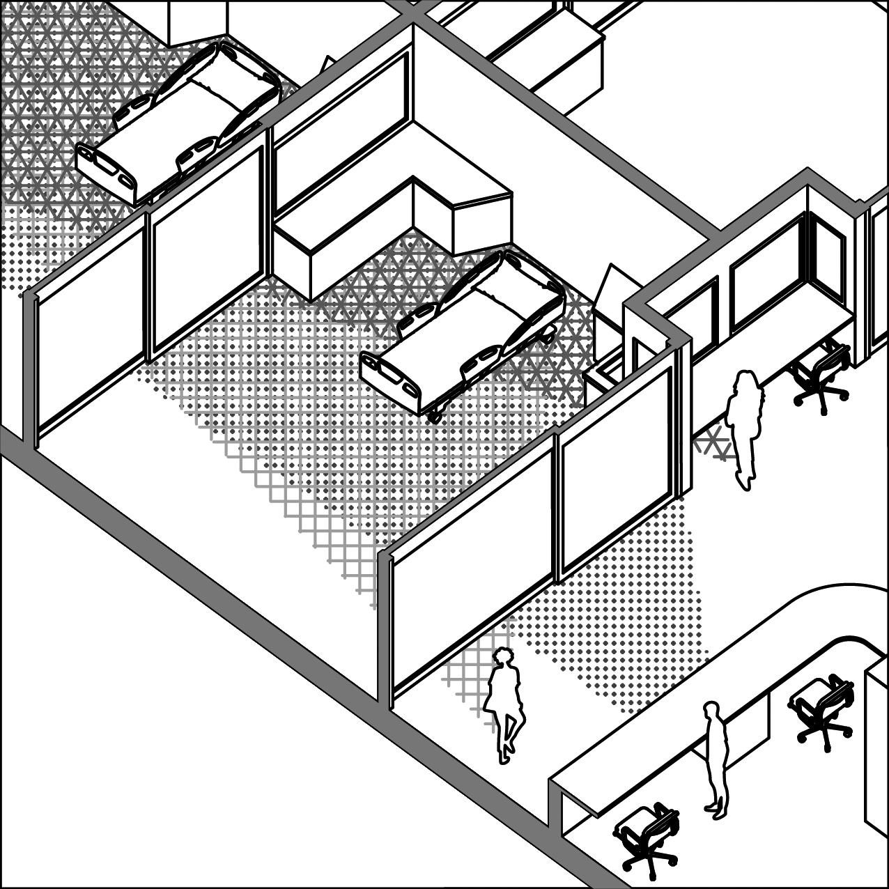 This thesis explores two approaches to redesigning the SickKids ICU, a teaching hospital in downtown Toronto, contrasting large-scale systemic changes with patient-centred, room-specific improvements. The efficiencyfocused approach prioritizes staff workflow, optimizing room placement to reduce travel distances and improve response times. The patient-centred approach balances visibility and privacy while enhancing visitor accommodations to support comfort and emotional well-being. By comparing both approaches, this study highlights the trade-offs inherent in each and explores opportunities for integration with minimal disruption. Ultimately, it demonstrates how design decisions shape patient care from both operational and human-centred perspectives within a legacy urban hospital.
