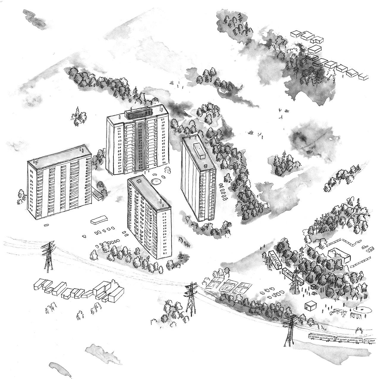 In 1957, USSR leader Nikita Khrushchev promised to provide an apartment for every family in the Soviet Union. The following decades of rapid housing construction were made possible by prefabricated concrete panels, manufactured in factories and assembled swiftly on site to form identical apartment buildings arranged in superblocks dubbed mikrorayons or “sleeping districts.” Today, over half of Lithuania’s population resides in these apartments, which have long exceeded their intended 30-year lifespan and consequently face significant structural challenges. This thesis examines Lazdynai, a microdistrict in the capital, Vilnius, and leverages this mass renovation project to explore concepts of deconstruction, modularity, and community identity while introducing shared spaces and fostering collective care.