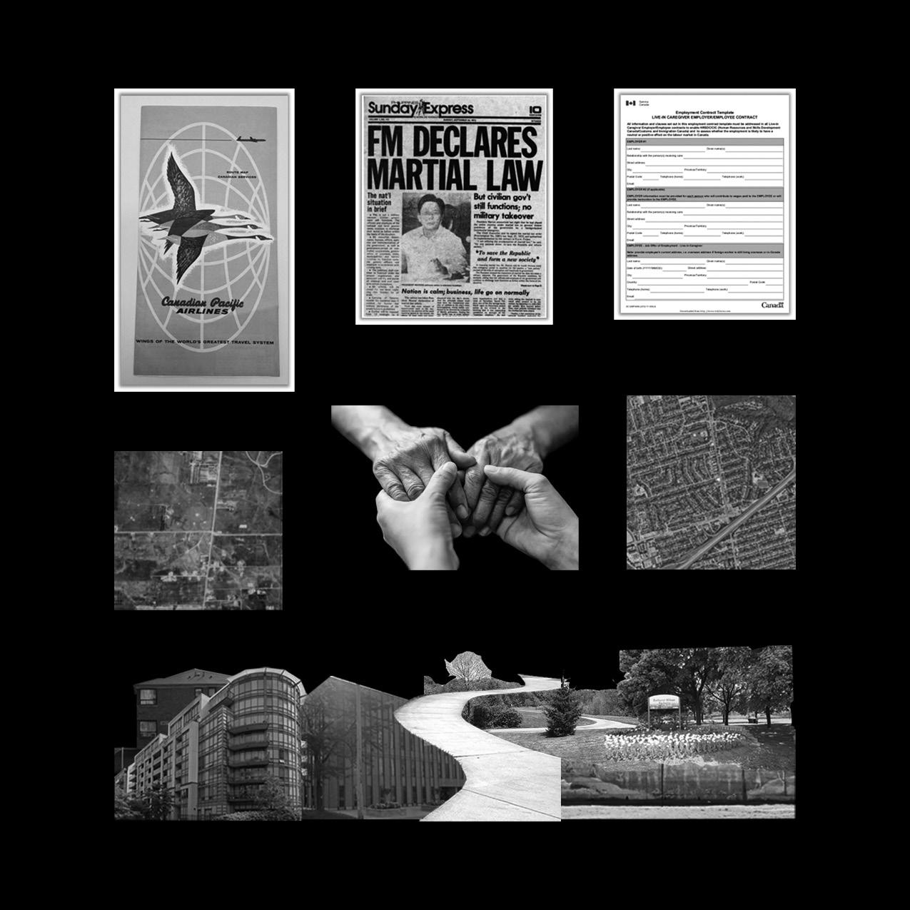 Connecting global influences and personal experiences, this thesis explores how the Filipino diasporic community made space in Toronto’s Little Manila (Bathurst-Wilson, 1950s-now). Filipino cultural space reflects deeper histories of international and national frictions than it is accredited. In Little Manila, such frictions simultaneously isolated and liberated Filipino caregivers from their homeland. This made Filipino caregiver placemaking practices responsive to how Canada’s 1992 Live-In Caregiver Program gradually diminished their identity, agency, and work. Past spatial theoretic frameworks reveal how Filipino caregiver placemaking was necessary navigation within Canadian space, done through recontextualizing the pre-existing neighbourhood to maintain their culture.