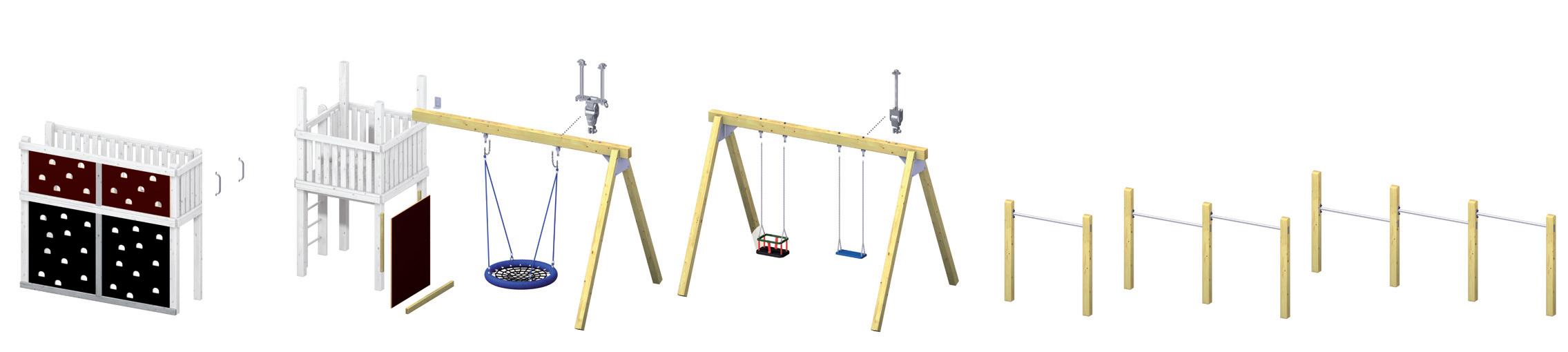3. Einstiegs-Möglichkeit: SCHAUKEL-BAUTEILE zum Anbauen an die Spieltürme oder zum Bauen einer freistehenden Schaukelanlage.