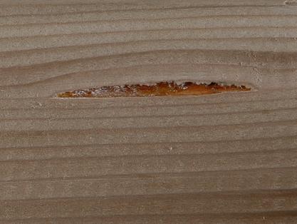 Die dunklen Stellen auf der Holzoberfläche haben ihren Ursprung in der Markröhre, die den Baum durchzog. Wie auch die Äste und die charaktervollen Maserungen gehören auch diese Erscheinungen ebenfalls zum Naturwerkstoff Holz und sind besonders bei Nadelhölzern nicht auszuschliessen. Ihr Auftreten bedeutet gemäss DIN 4074 keinen Mangel.