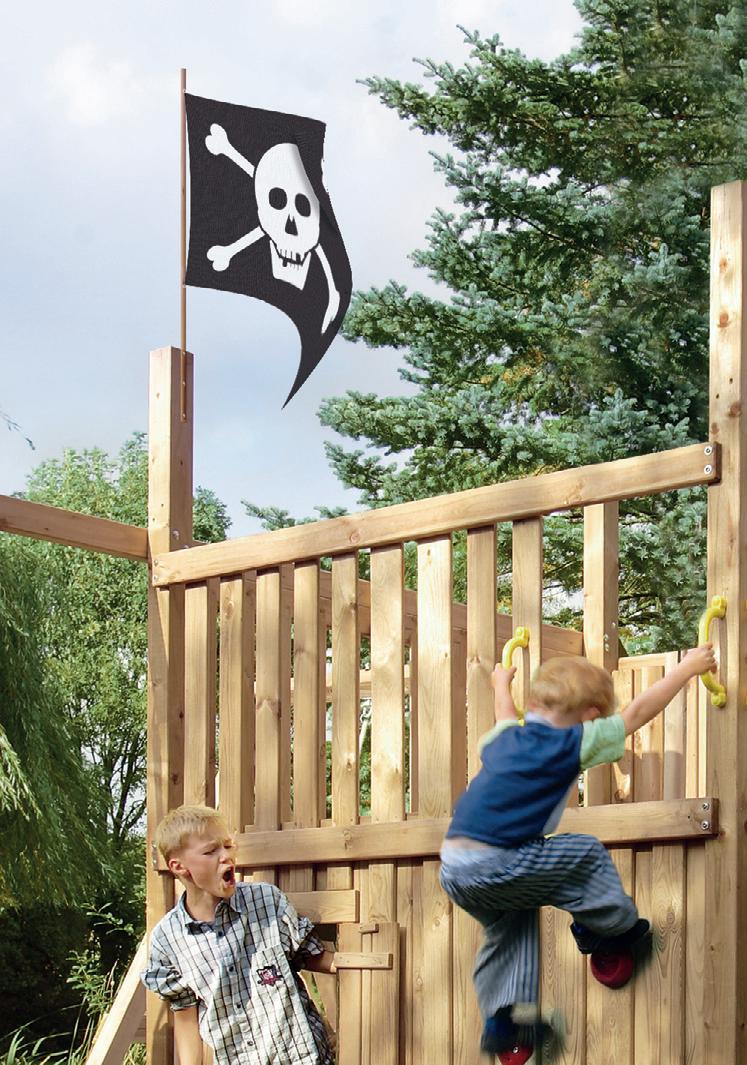 Spielturm: vier Sets; Anbau: zwei Sets; Veranda u. Piratenschiff: jeweils ein Set