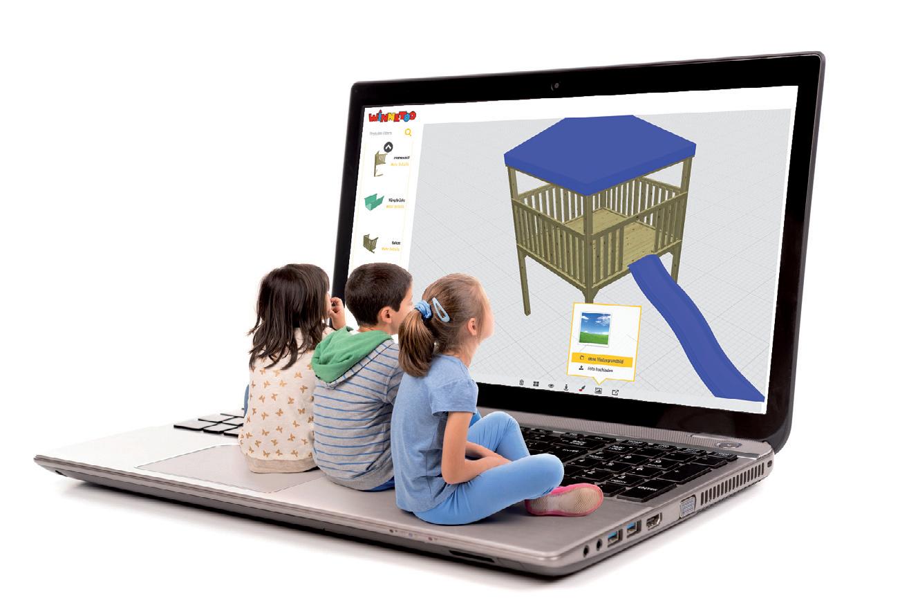 Schritt für Schritt „bauen“ Sie virtuell Ihr Kinderparadies und vergessen Sie kein Bauteil: Selbst Schrauben, Bodenanker und die Fallschutzmatten planen Sie gleich mit!