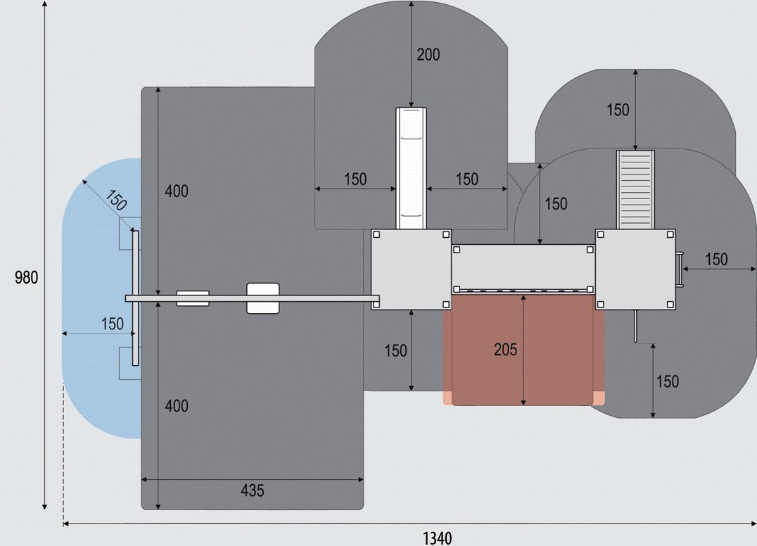 FlächenbedarfA mit EdelstahlrutscheB: 980x 1340 cm