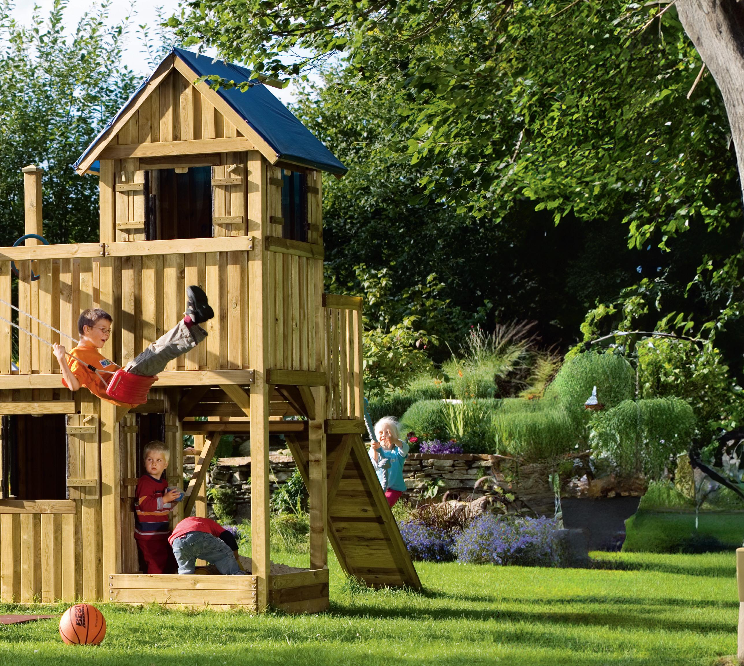 DER WINNETOO SPIELTURM. Mit einer Grundfläche von fast 1,3 Quadratmetern – für den Spielturm, ohne Anbauten – passt dieses „Start-Set“ der WINNETOO Abenteuerwelt in JEDEN REIHENHAUSGARTEN. Passend zu Ihrer Grundstücksgrösse können Sie Bauteile zum An- und Ausbauen wählen. Die Holzausbauelemente, die Schaukelbauteile und die vielen Spielideen stellen wir Ihnen im Anschluss im Detail vor.