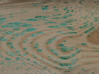 Mit einem Tuch oder einer Wurzelbürste können diese „Schönheitsflecken“ nach dem Trocknen des Holzes entfernt werden. Tipp: Sprühen Sie die betroffenen Stellen vor der Reinigung mit einem chlorhaltigen Reiniger ein.