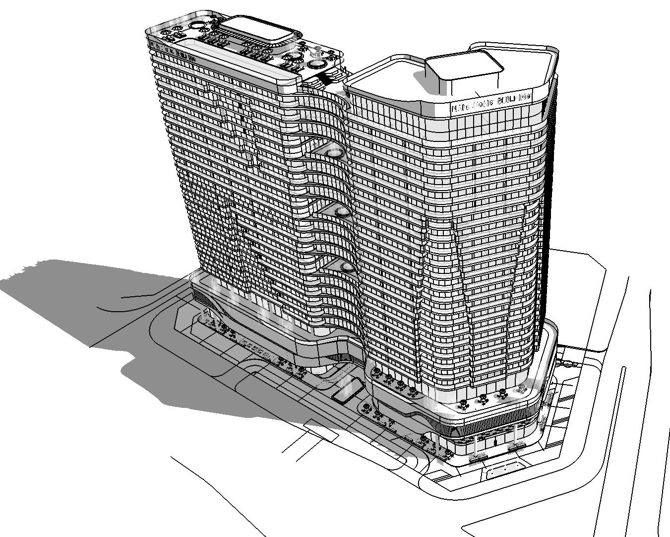 The design task was to create a contemporary building offering comfort and convenience while maximizing views to the city and a big lake park in the south side of the complex.