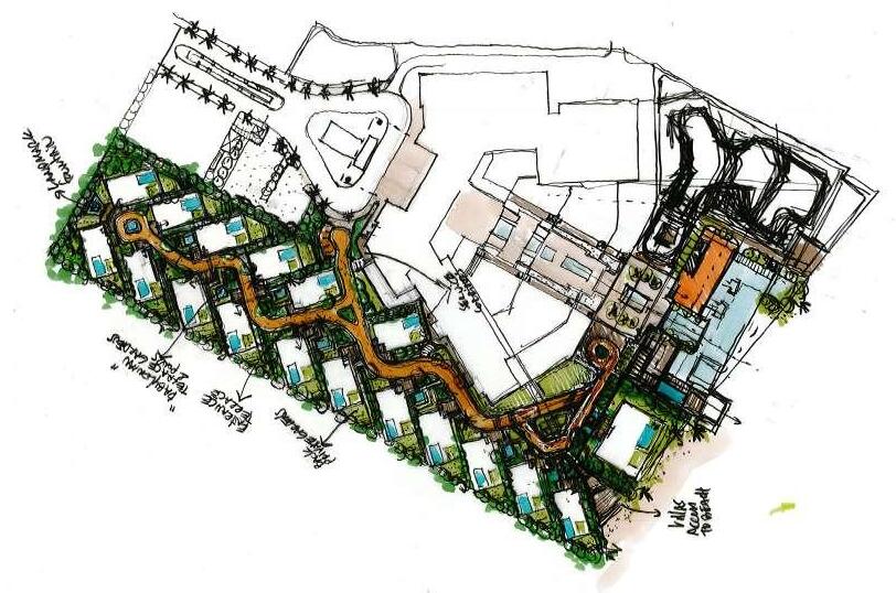 The circulation was planned to connect the users along the terraces minimizing the impact of roads to the villa clusters