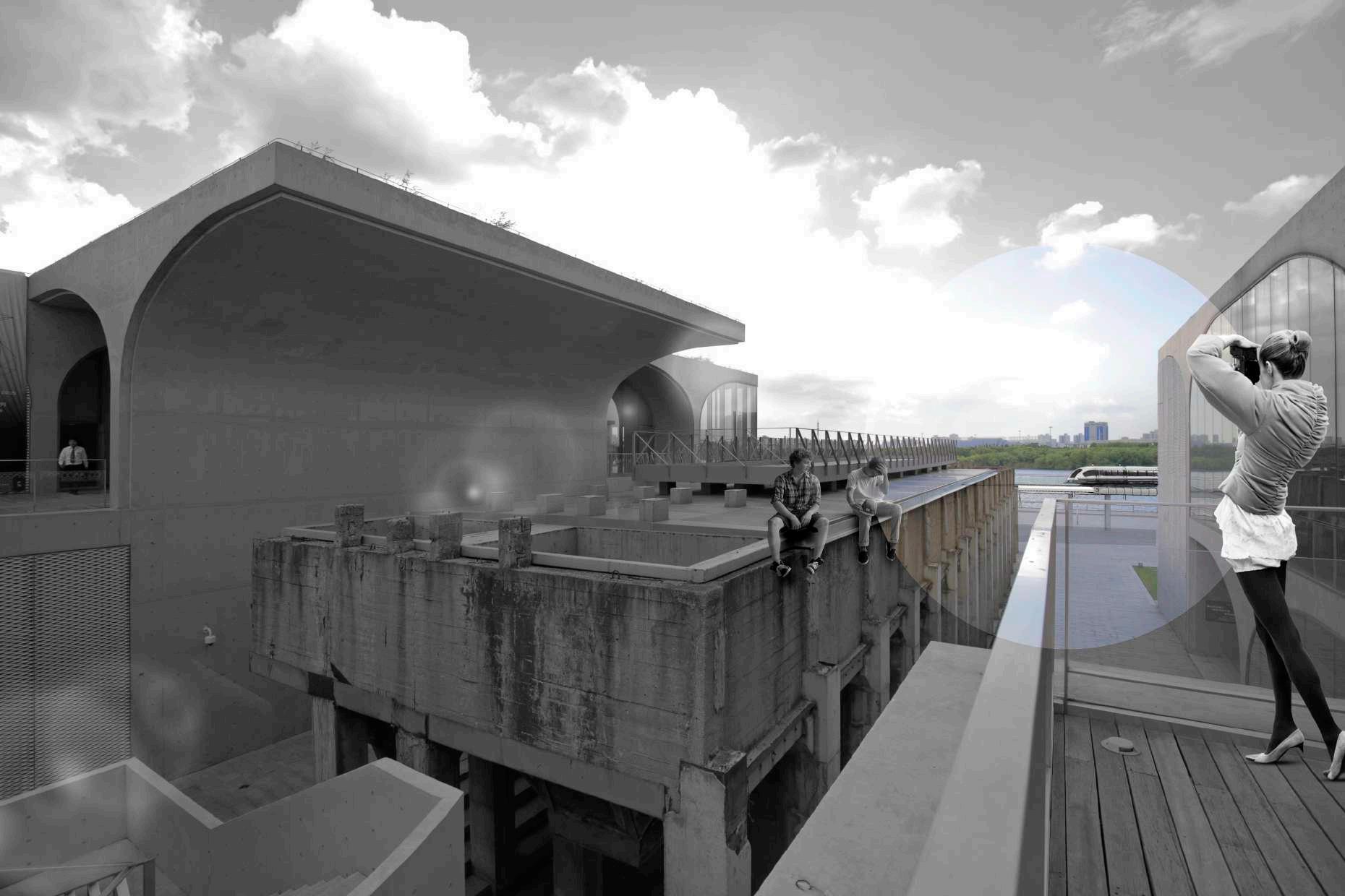 5. Covered Plaza Transition between the formal and informal city, placed in the dislocation point of the residential blocks series and on one of the main spots of arrival of the public transportation and encounter of the residents.