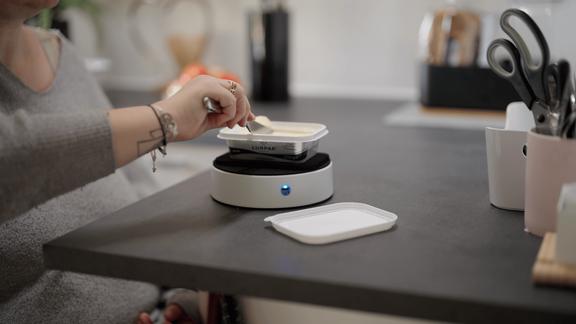 Easy-Up er et innovativt hjælpemiddel, der gør det lettere og sikrere at udføre daglige opgaver med kun én hånd. Den fungerer som en stabiliserende platform, hvor man ved hjælp af vakuum kan fastgøre genstande som glas, dåser eller flasker – og dermed udføre opgaver, der ellers ville kræve to hænder