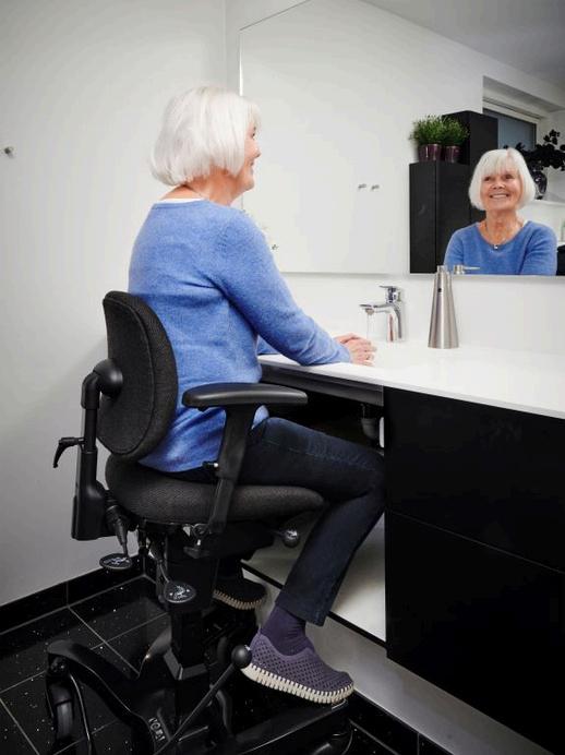 Bad, toilet og køkken, belysning, borde, stole, sæder, puder, dyner, senge og madrasser til forebyggelse, kompensering og behandling Støttegreb, løfteplatforme, trappelifte og ramper mm