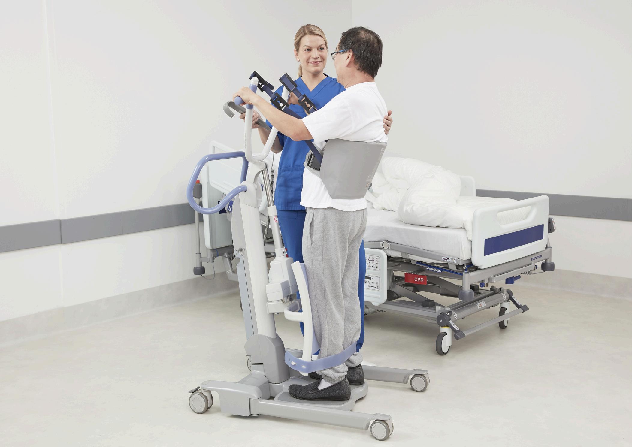 I flere træningssituationer er man ofte to eller flere til at asistere en patient i forhold til eksempelvis at komme op at stå fra sengekanten eller gå de første skridt efter længere tids sengeleje