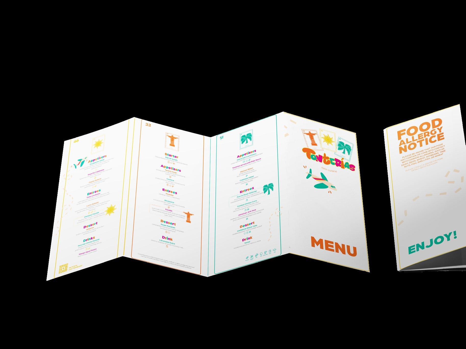 Collaborated with a design team to design branding for JWU culinary students hosting a public grand opening event. Our client requested a to represent their team, TonterÃas, and the Latin cuisines they’d be serving. The final logo combined a teammate’s type-driven illustration with my own LoterÃa-style graphic illustration, resulting in a playful and culturally rooted brand system. My role focused on designing three separate menus for each culinary team, reflecting their unique dishes while staying true to the group’s overall vision. The biggest challenge was maintaining visual consistency while giving each menu its own personality. The final designs captured the energy of the event and the vibrancy of the students’ culinary stories.