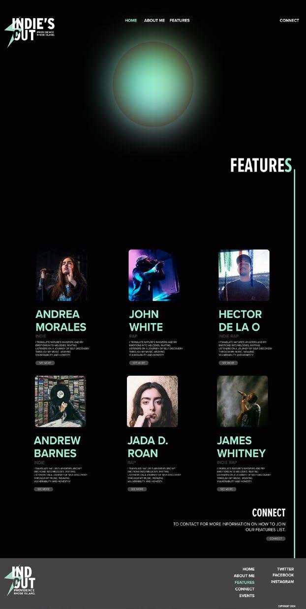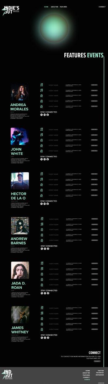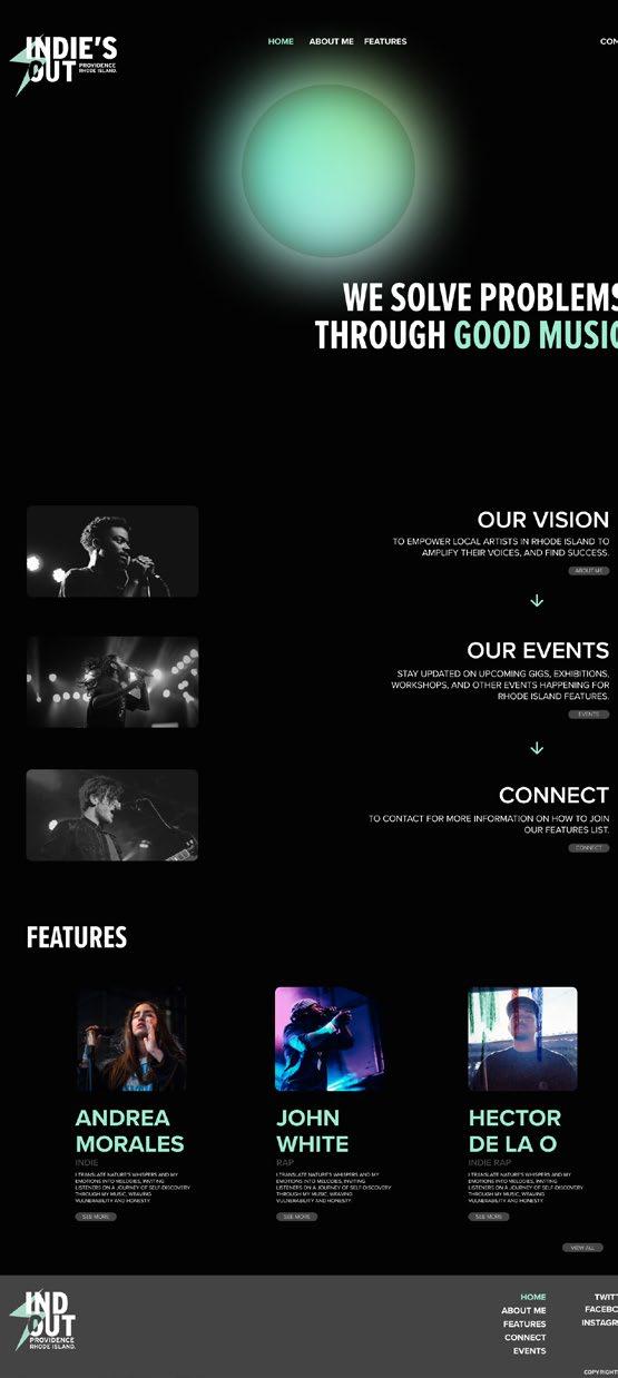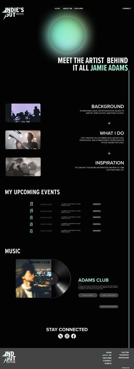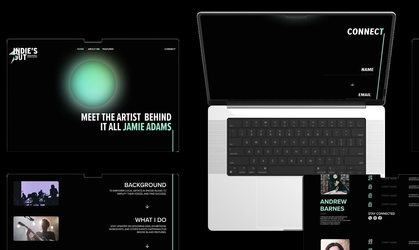 Created a logo and an easy-to-navigate website highlighting indie artist’s in Providence, Rhode Island, with an events page displaying their upcoming performances and dates. This project required a deep dive into indie band culture, aesthetics, and vision for the website design. One of the main challenges was finding the right balance between visual appeal and functionality , all while ensuring the indie look. The end results successfully highlight the artist’s and offer a pleasant experience for their fans.
