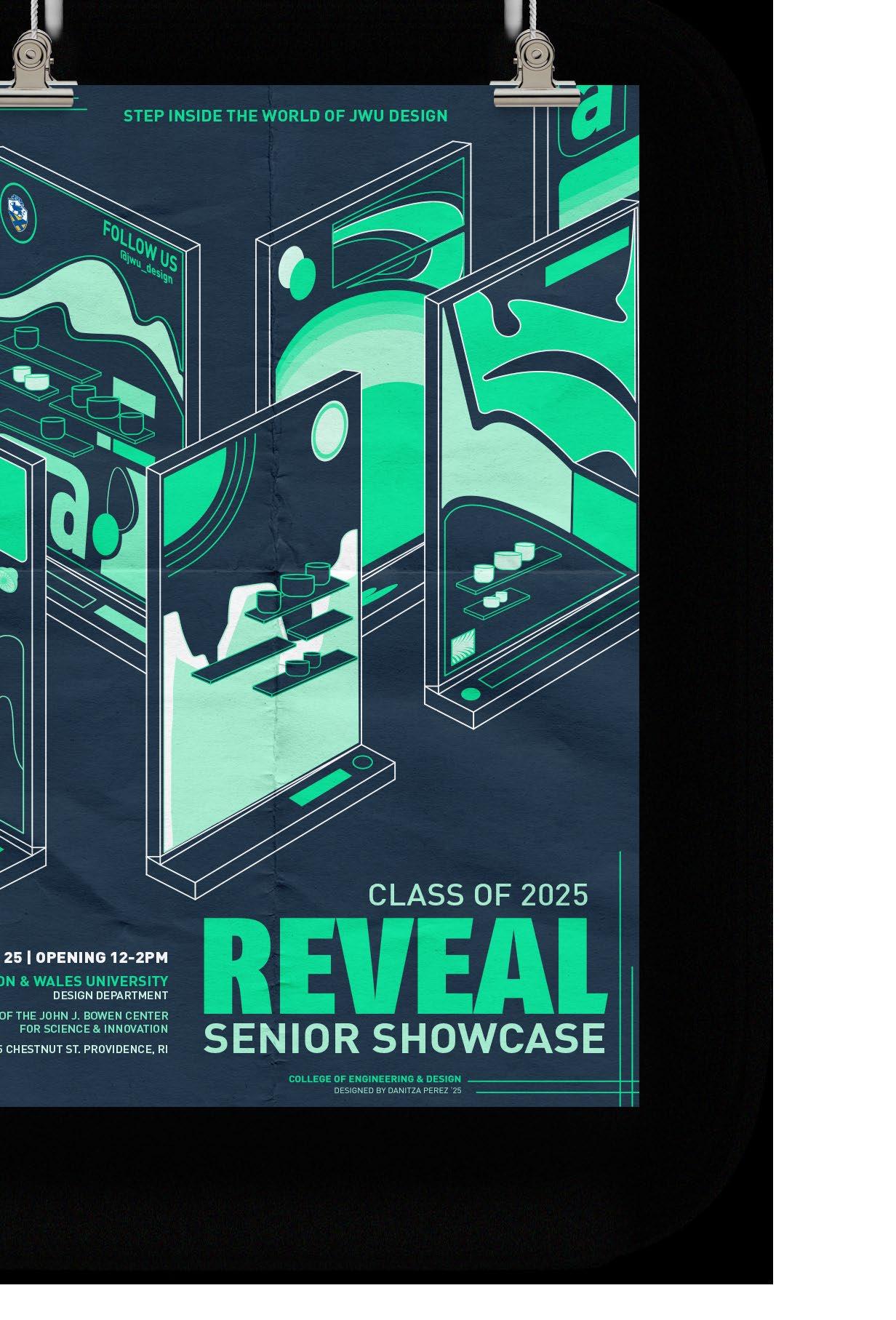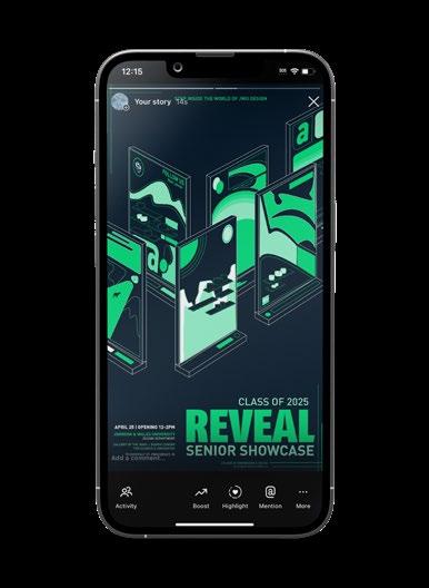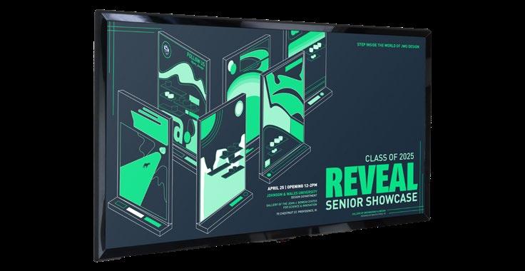 Designed the official reveal poster for the JWU Class of 2025 senior showcase as part of a department-wide mini competition. The poster was anonymously selected by peer vote as the concept that best represented the senior class. Following the selection, I expanded the design into a full campaign, including social media ads, TV wall graphics, alternate poster sizes, a t-shirt, and sticker. The final deliverables maintained visual consistency while effectively capturing the energy and identity of the graduating class.