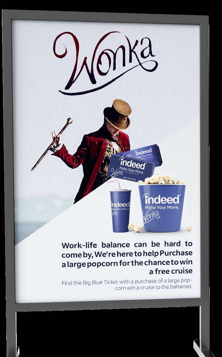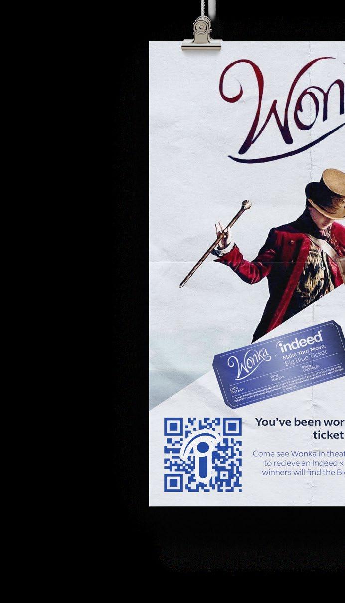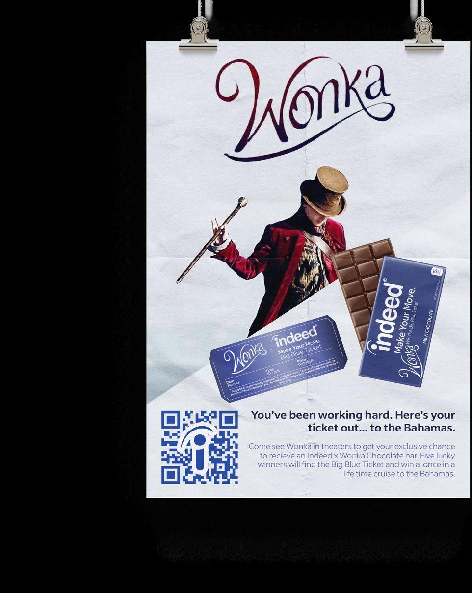 Collaborated with the JWU Ad Team to create Indeed , targeting Gen Z (18–24). Deliverables included a executions , and a presentation for the American Advertising Federation’s, National Student Advertising Competition while introducing a fresh design aesthetic aimed at resonating with the target demographic. My role focused on designing promotional materials and the 2023 film Wonka, including a poster, chocolate bar wrappers, and winning tickets to generate excitement. Some of the main challenges were establishing content hierarchy and adapting to revisions while maintaining a Gen Z-focused aesthetic. The final designs achieved a cohesive, engaging look that resonated with the target audience.
