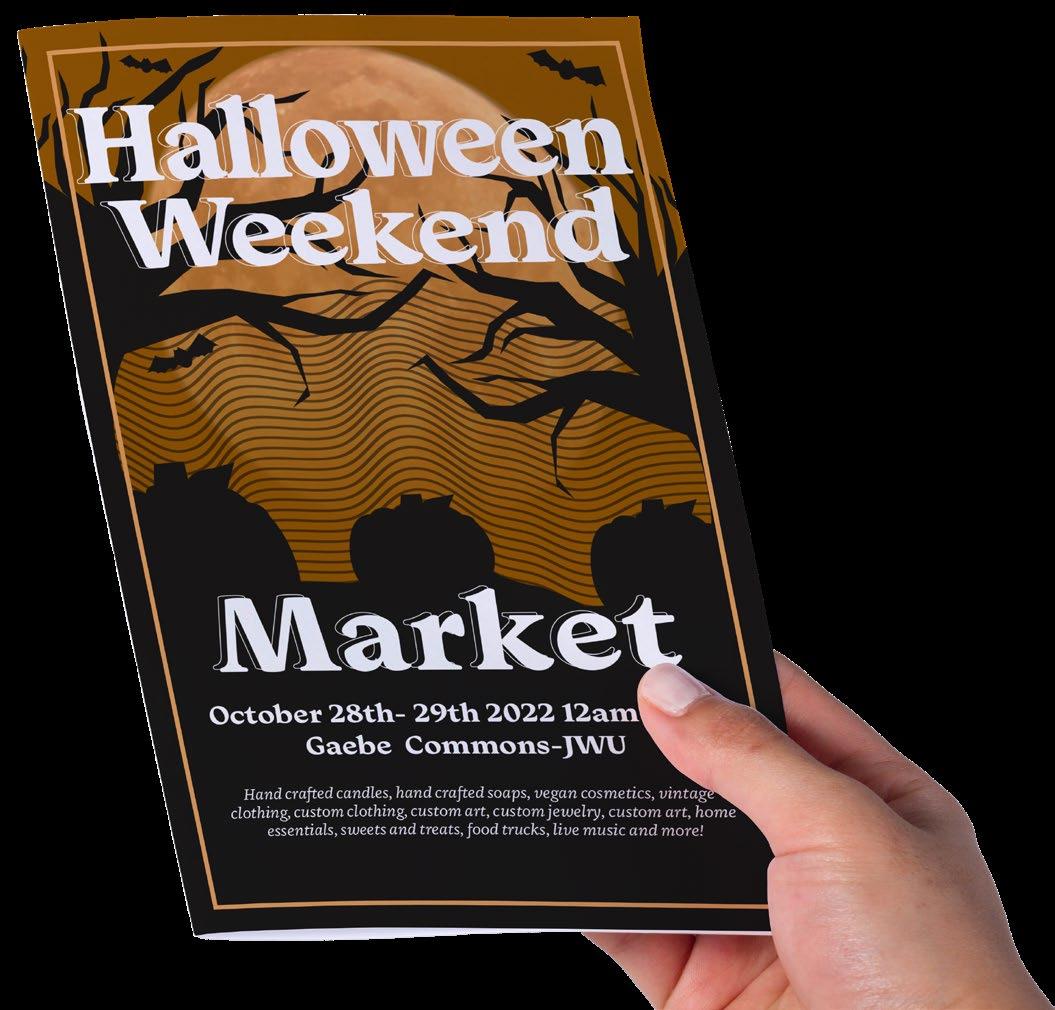 Designed a Halloween-themed outdoor market promotional flyer, creating a visually engaging piece that incorporates spooky elements with a strong seasonal appeal. This project involved careful consideration of color schemes, typography, and imagery to ensure a cohesive and striking design. One of the main challenges was blending creativity with clarity, ensuring the flyer was both eye-catching and informative The end result successfully captures the Halloween spirit while effectively promoting the market event, making it both festive and compelling for the target audience.