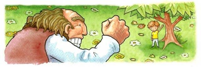 Then one day the giant came back he saw the children playing in his garden. What are you doing here ? He shouted in a very loud voice. The children ran way.