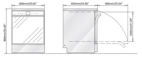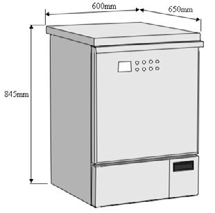 ** Głębokość i wysokość wewnętrzna w modelu ULT U100 jest inna w zależności od umiejscowienia kompresora.