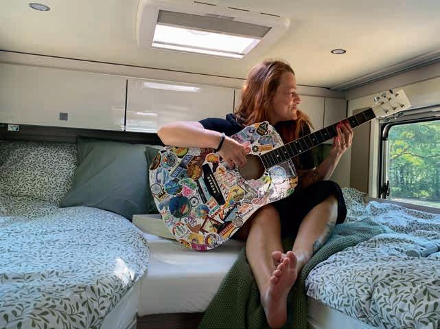 Ayo Hansen bruger noget af tiden i sin camper på at lære at spille guitar.