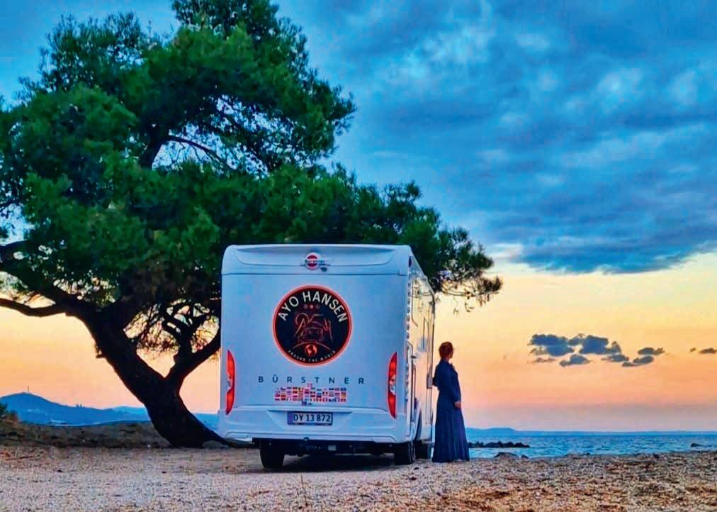Ayo Hansen er næsten altid alene i sin camper, når hun rejser. En gang imellem flyver kæresten ned og er med. Men som regel er hun kun sig selv, og hun føler sig aldrig utryg: