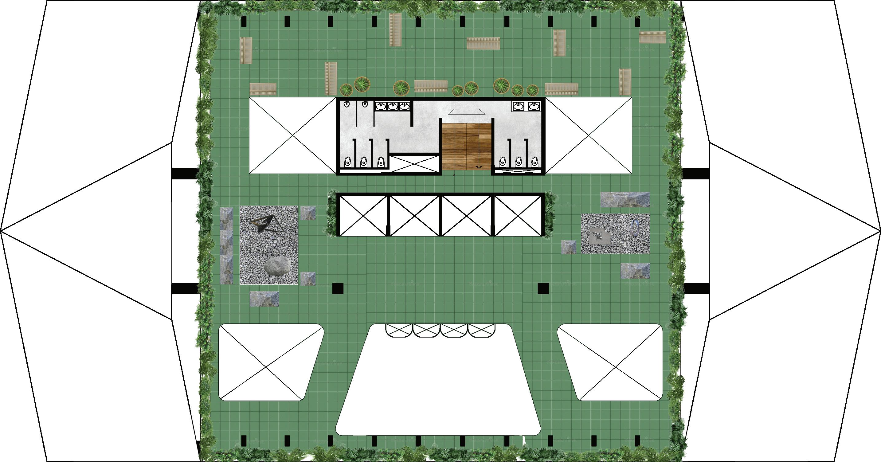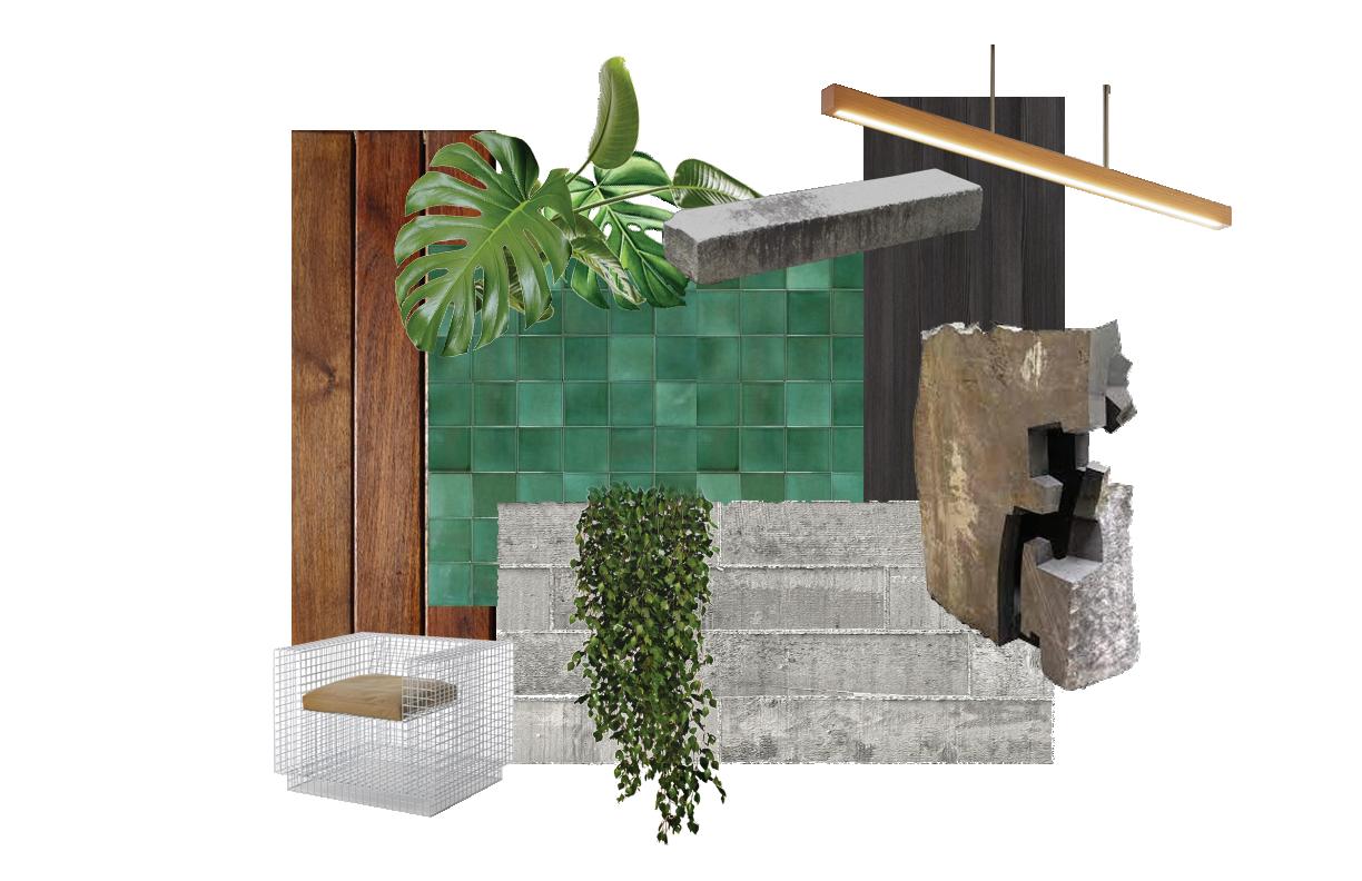 El concepto del interiorismo, selección de mobiliario e iluminación de mi proyecto está referenciado a el artista Carlos Mérida, el cual intervinó la fachada de la torre insignia con su obra ‘motivos tlatelolcas’, este decía que debía de haber una integración plastica dentro de las artes, así como la estética tenía que ser un resultado que se diera debido a la calidad arquitectónica y no a la planeación de algo superficial. Esto me inspira a crear no solo un espacio de confort dentro de la torre, si no que crear esta integración de confort, comodidad, trabajo, producción y relajación dentro de todo la torre. Lo cual la selección de materiales debía estar ligada directamente con la vegetación y para la vegetación (alimentos) ya que para esta funciona y sirve el edificio y vicecersa.