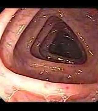 Esta imagen presenta una endoscopía del colon, un procedimiento médico utilizado para visualizar el interior del intestino grueso.