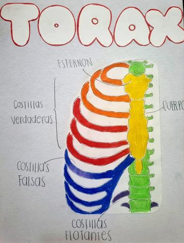 Inluyen los huesos de la columna vertebral, el esternón y las costillas, encargadas de proteger los pulmones y demás estructuras de la cavidad torácica; suman un total de 51 huesos.