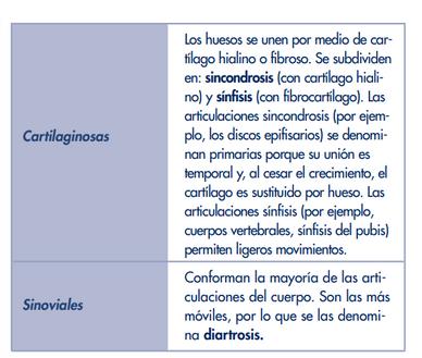 Son las conexiones existentes entre los componentes rígidos del esqueleto, es decir, entre los huesos o los cartílagos. Todas ellas varían tanto en su estructura como en su disposición y, con frecuencia, están especializadas en determinadas funciones. Sin embargo, pueden presentar algunas características estructurales y funcionales comunes.